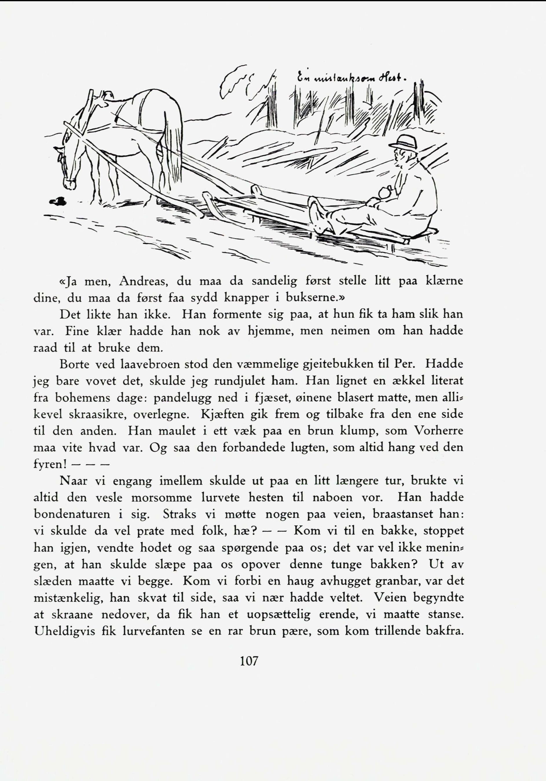 mistænkelig, han skvat til side, saa vi nær hadde veltet. Veien begyndte