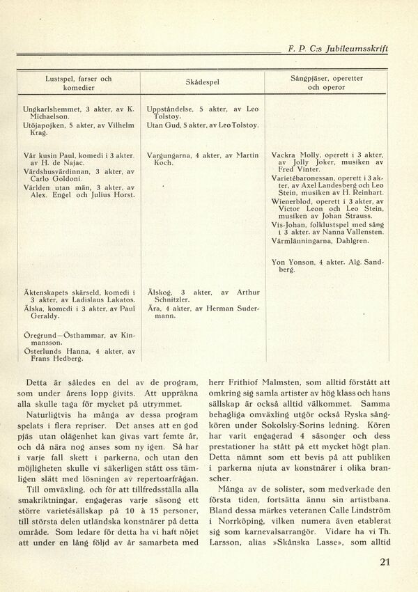 Lustspel, farser och Skådespel Sångpjäser, operetter
