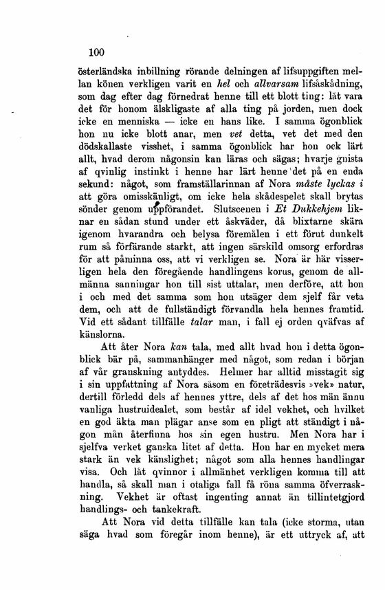 i sin uppfattning af Nora såsom en företrädesvis »vek» natur,