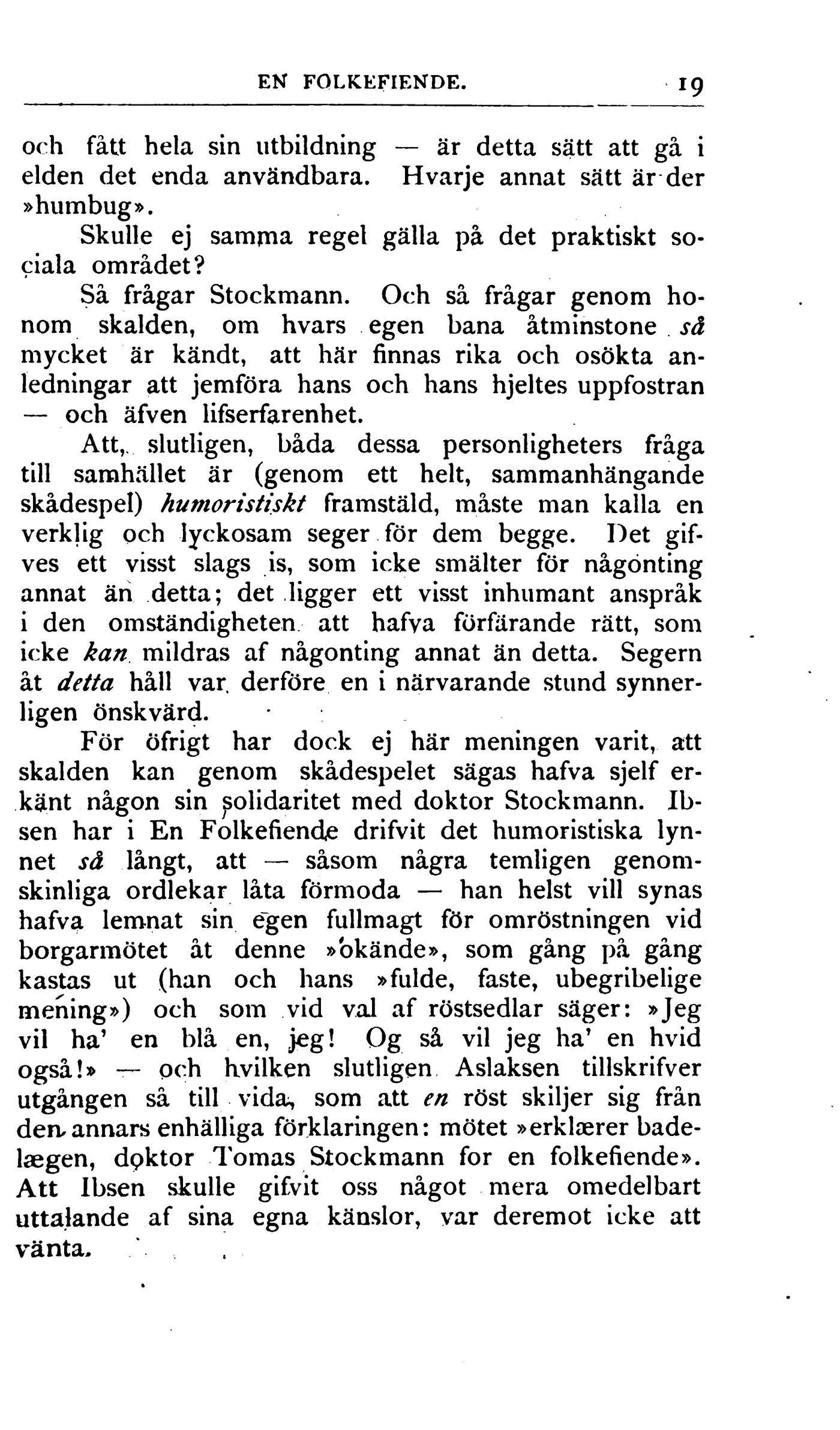 Ibsen har i En Folkefiende drifvit det humoristiska