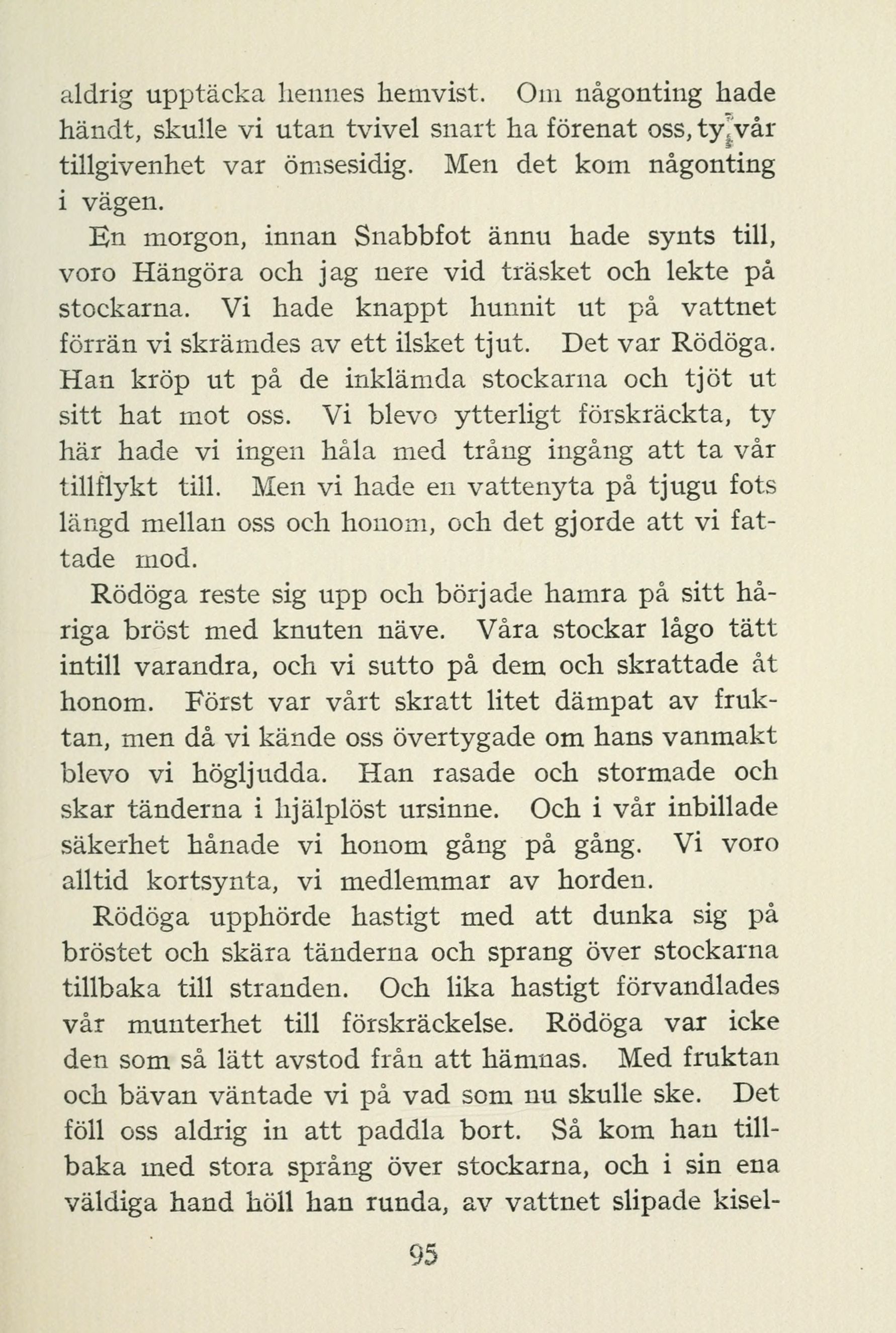 förrän vi skrämdes av ett ilsket tjut. Det var Rödöga.