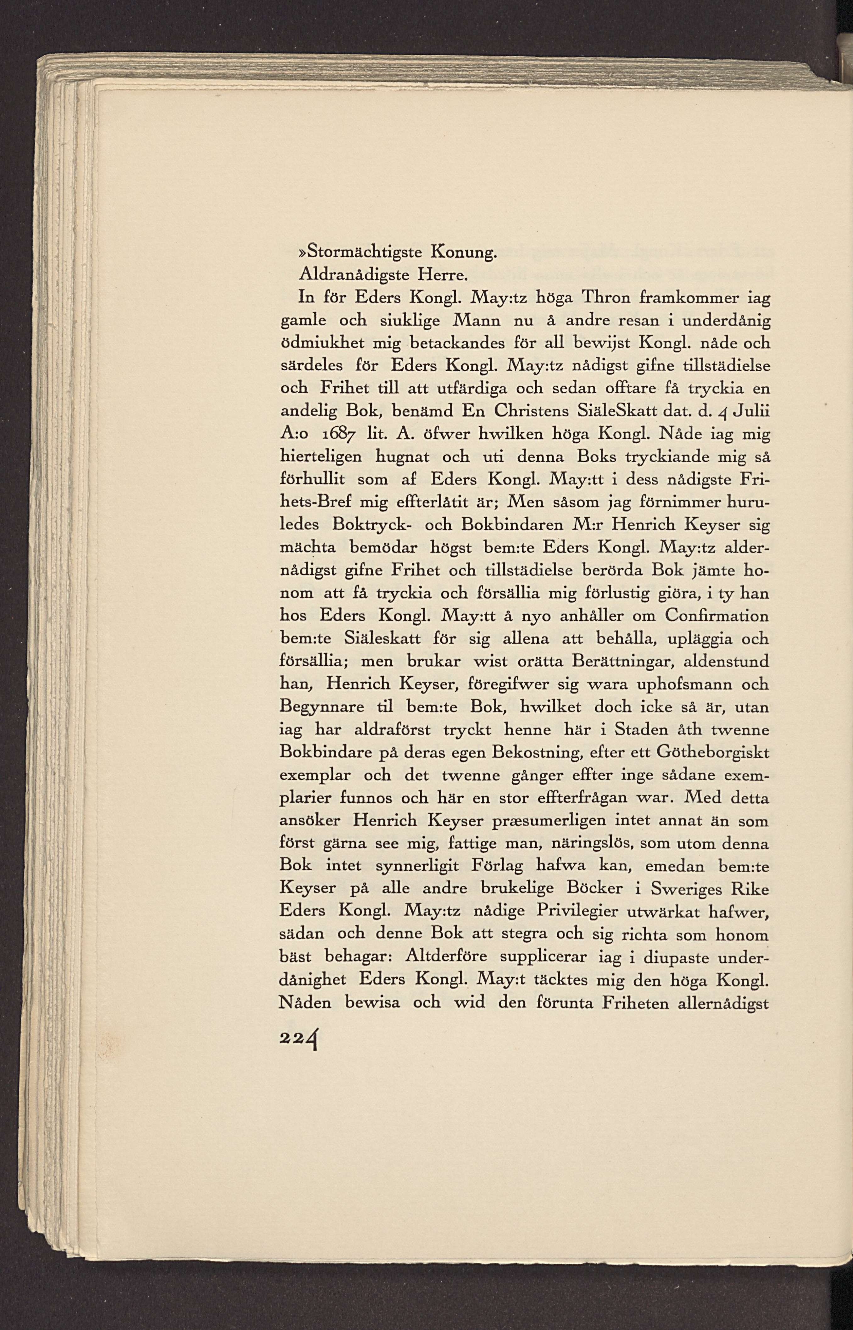 huru-ledes Boktryck- och Bokbindaren M:r Henrich Keyser sig