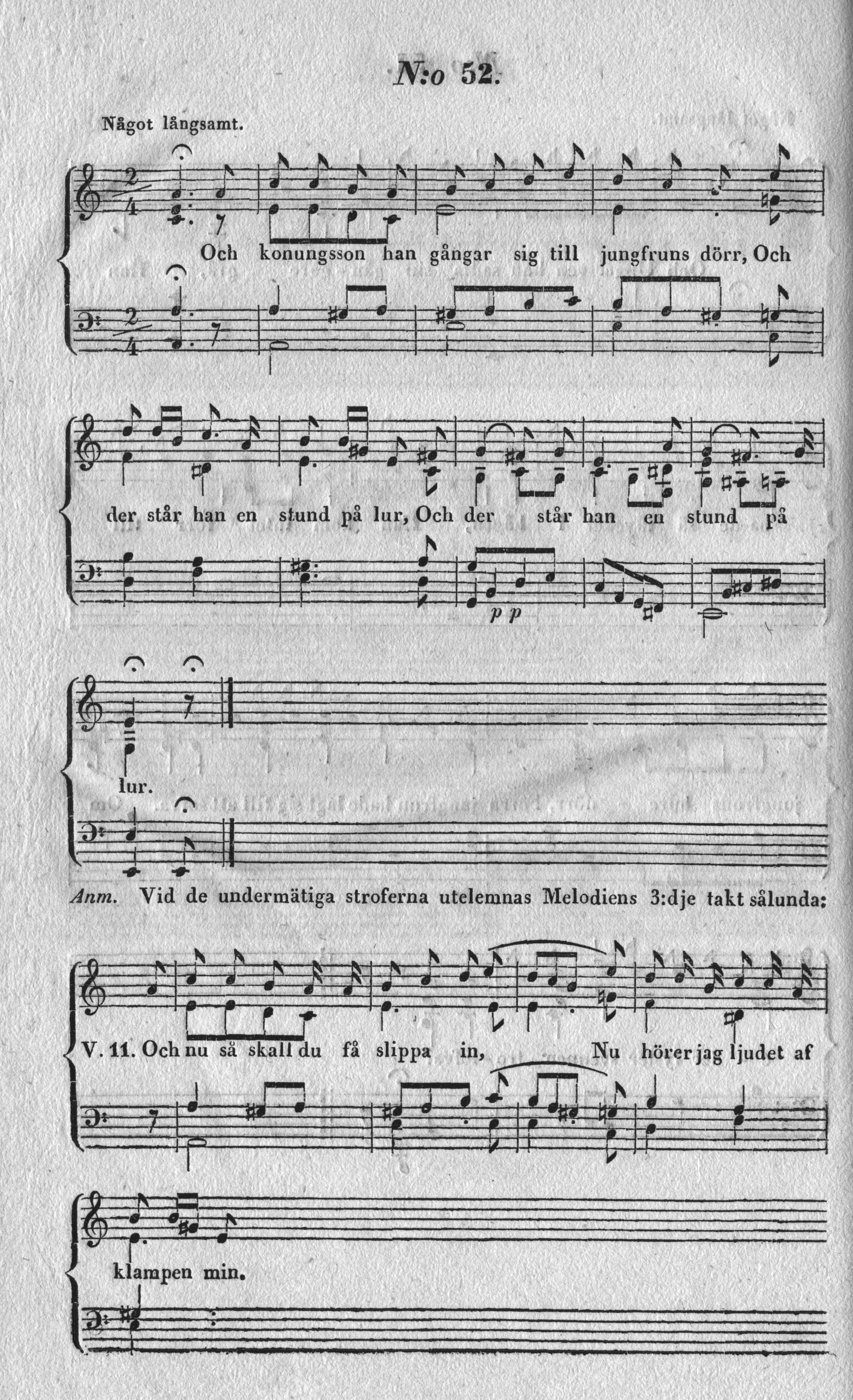 Och konungsson han gångar sig till jungfruns dörr, Och