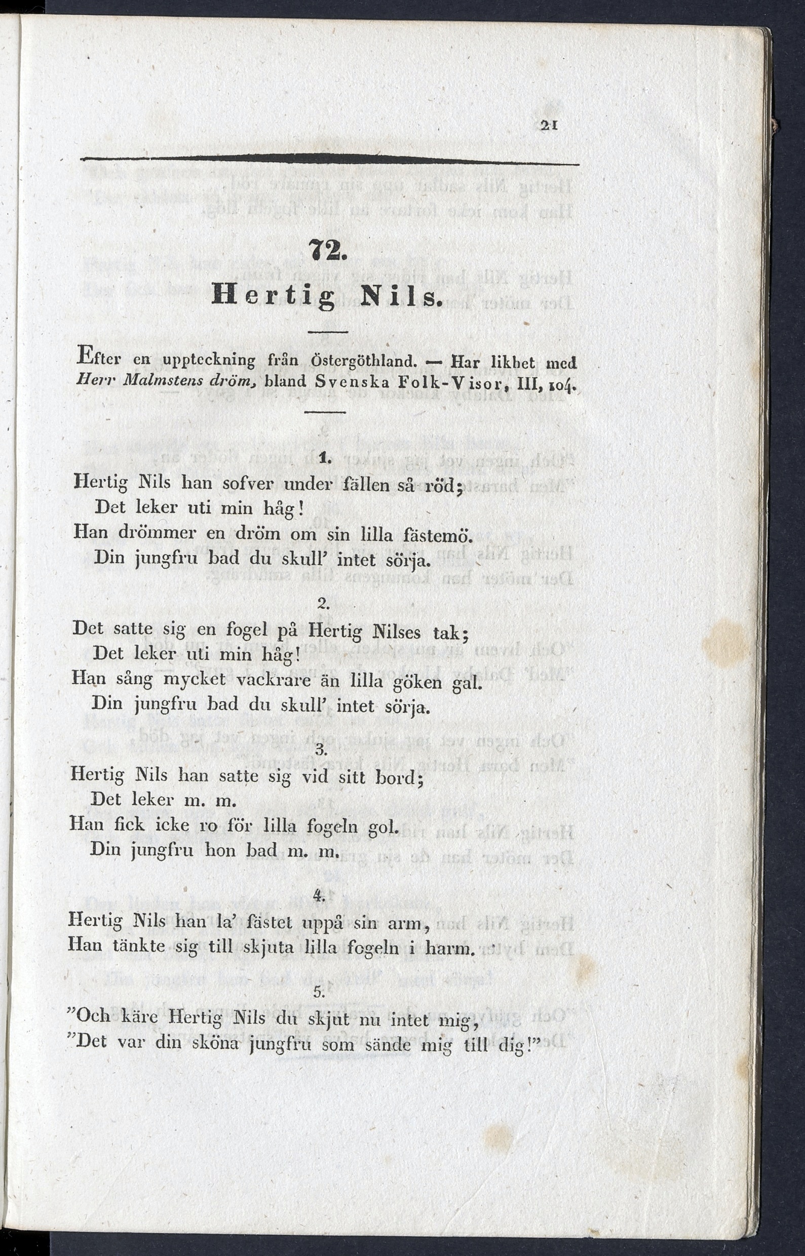 Herr Malmstens dröm, bland Svenska Folk-Visor, III, 104.