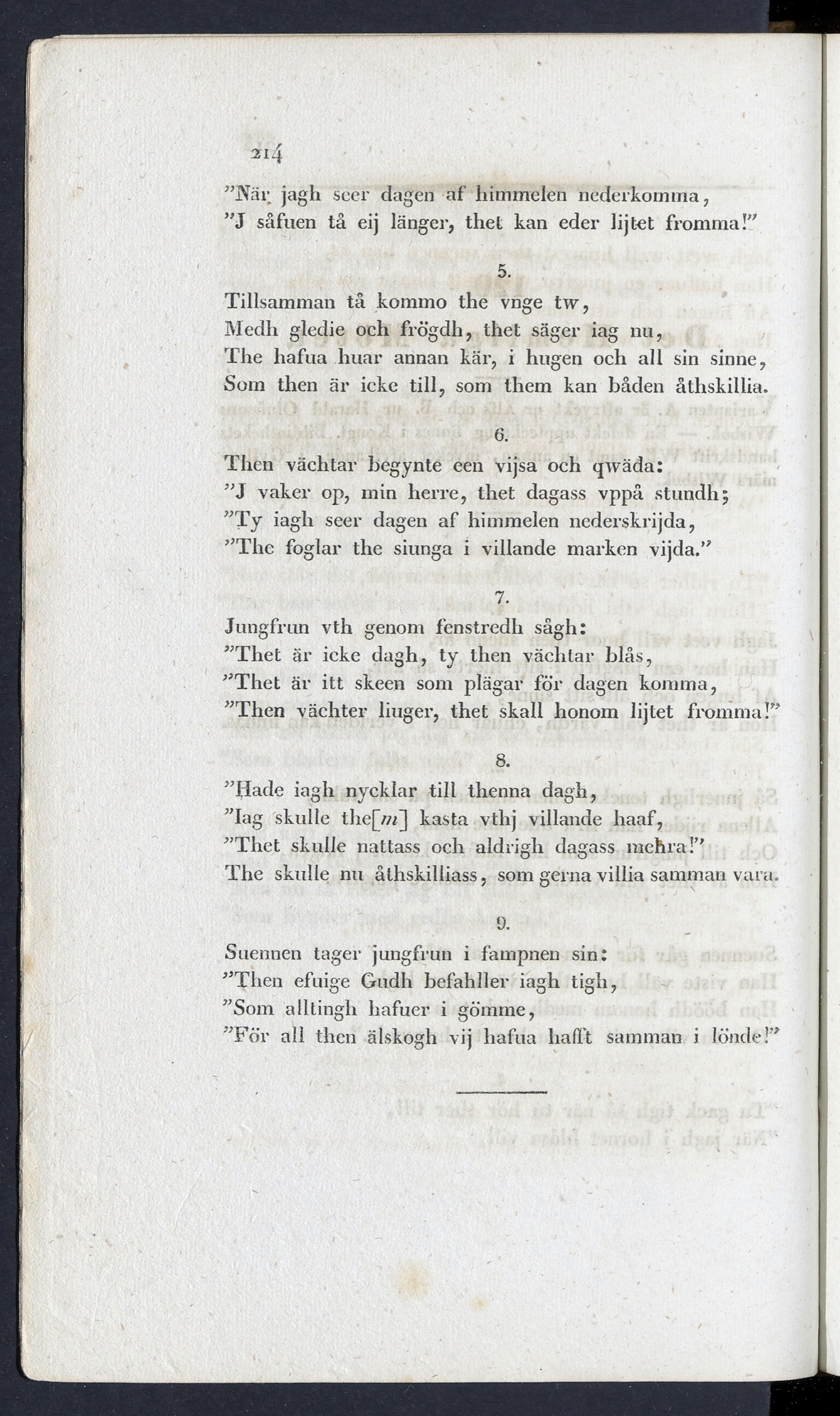 The skulle nu åthskilliass, som gerna villia samman vara.</poem>