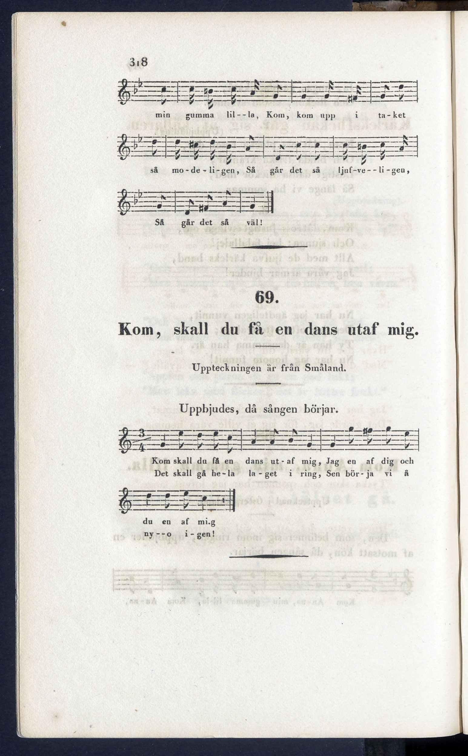 ■o—/ la, Koin, koin upp ta - ket s& mo - de ~ li-gen , Så går det så ljuf~ve ~ - li - gen , Så går det så väl! 69. Kom, skall du få en dans utaf mig. Uppteck ningen Ur från Småland. Uppbjudes, då sången börjar. i 9--- 9 —-P- =q—p—y- Kom skall du få en Det skall gå he - la dans ut - af mig , la - get i ring, Jag en af dig Sen bör- ja vi och du en af mi.i