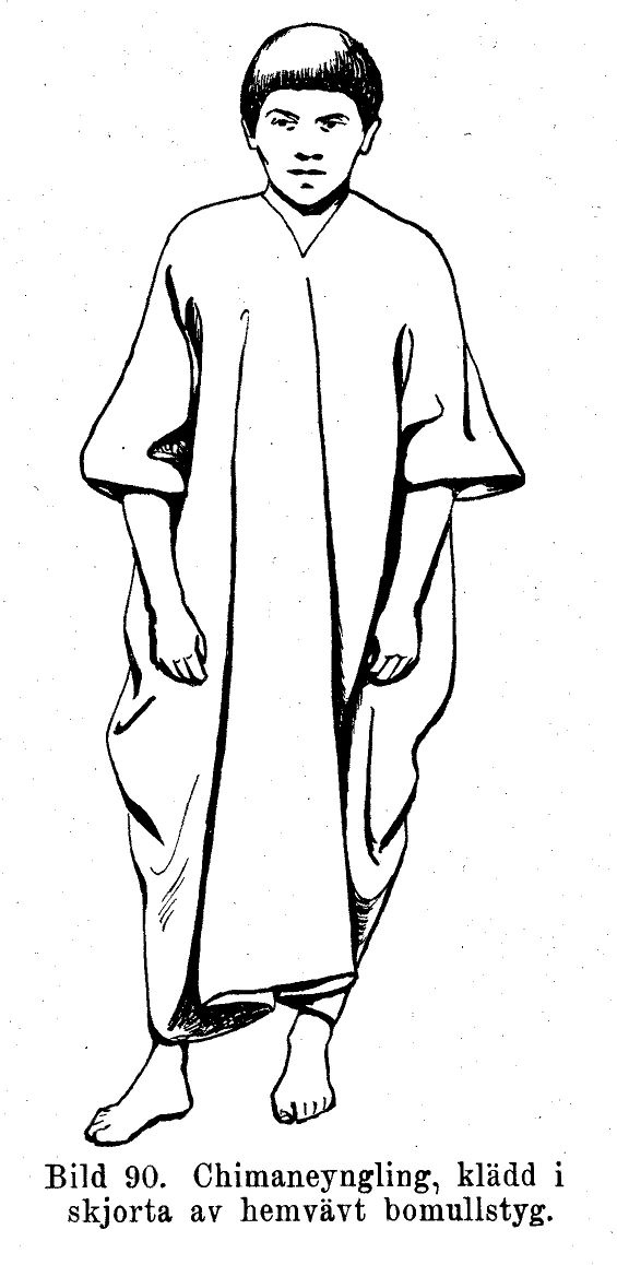 | Bild 90. Chimaneyngling, klädd i skjorta av hemvävt bomullstyg. |