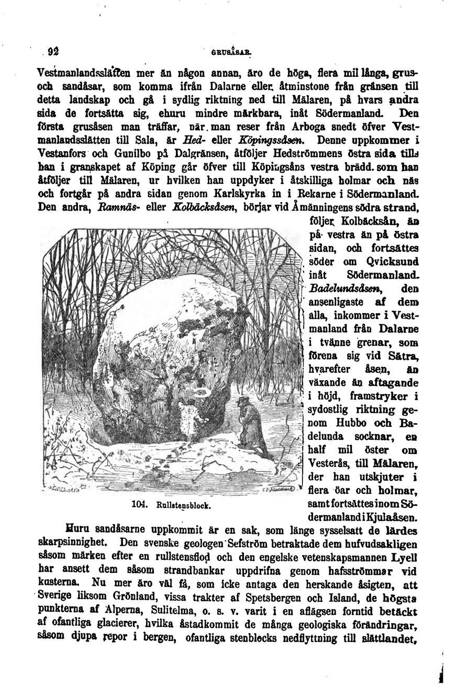 såsom märken efter en rullstensflod och den engelske vetenskapsmannen Lyell
