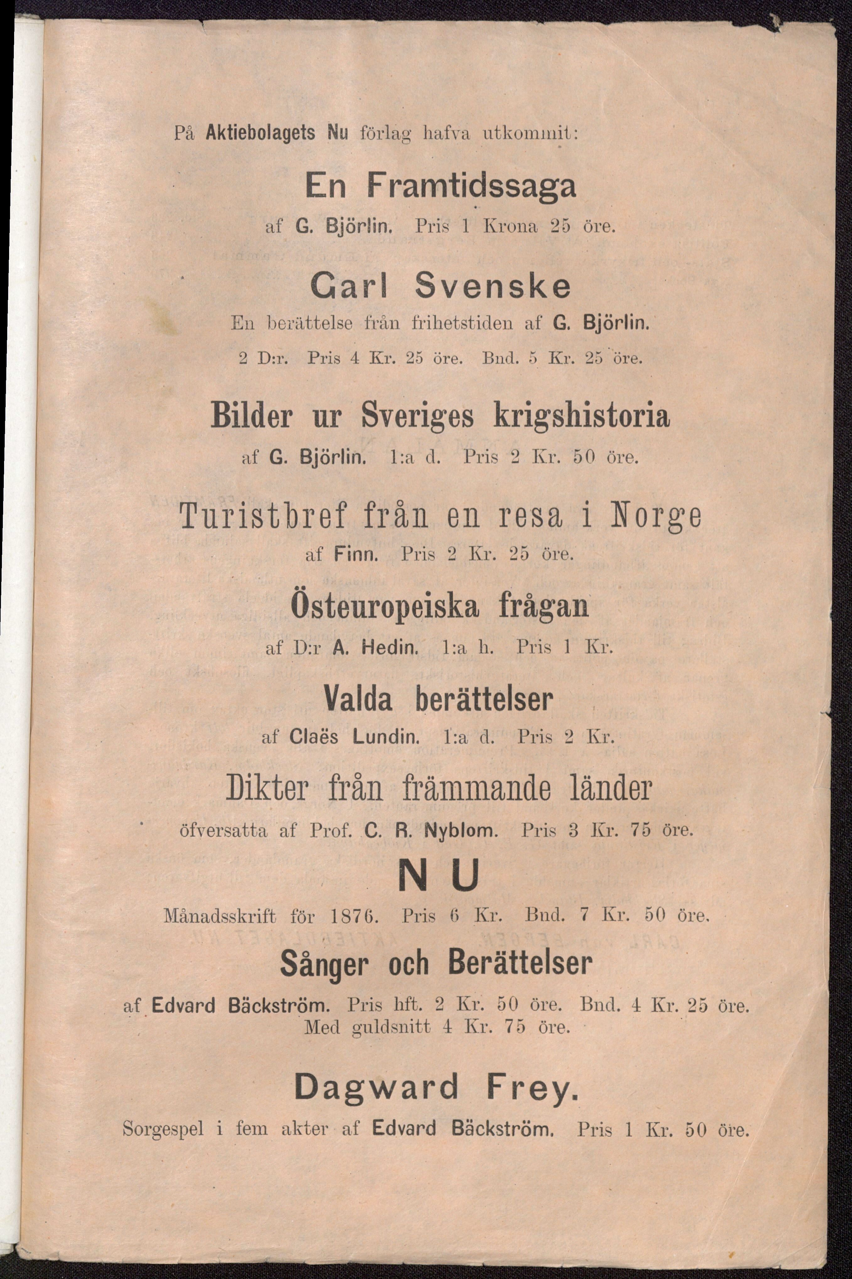 Månadsskrift’ för 1876: PHst6orkKktT Bride Kr. 90 Öre,