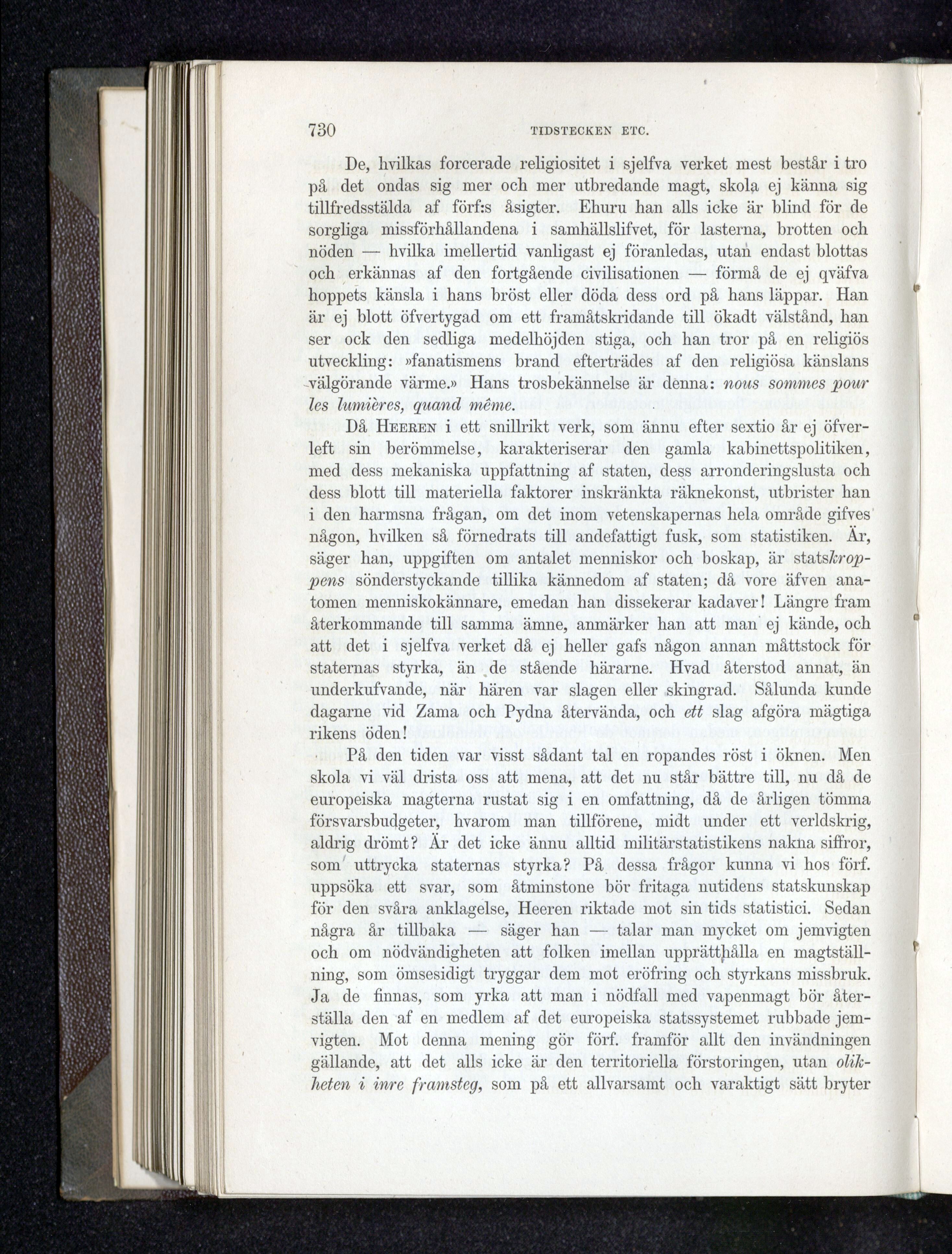 Full resolution (JPEG) - On this page / på denna sida - Femte häftet - Tidstecken i den nyaste statsvetenskapliga litteraturen. Af A. Hedin. Revue de droit international et de législation comparée, publiée par T.-M.-C. Asser, G. Rolin-Jaequemyns, J. Westlake, avec la collaboration de plusieurs jurisconsultes et hommes d’état. (Gand 1869). — Maurice Block, L’Europe politique et sociale. (Paris 1869). — Fr. Xav. Neumann, Die civilisation und der wirthschaftliche fortschritt. (Wien 1869). — E. Laboulaye, Smärre skrifter i politiska och sociala ämnen. Öfversättning. Häft. 1. (Sthm 1869). — F. von Holtzendorff, Die principien der politik. (Berlin 1869). — F. Bajer, Hvilket forhold imellem stat, kirke og skole fremmer bedst sand frihed, tro og oplysning i folket? Bidrag til svar. (Kjöbenhavn 1868). — J. Frohschammer, Das recht der eigenen überzeugung. (Leipzig 1869). — Populära anteckningar i allmän statsrätt af en folkets vän. Häft. 1. (Sthm 1868). — C. G. Holck, Den danske statsforfatningsret. (Kjöbenhavn 1869). — C. V. Nyholm, Grundtræk af Danmarks statsforfatning og statsforvaltning. (Kjöbenhavn 1869). — Orla Lehmann, Den islandske forfatningssag i landsthinget 1868—1869. (Kjöbenhavn 1869).— J. C. Bluntschli, Geschichte des allgemeinen staatsrechts und der politik. Seit dem sechzenten jahrhundert bis zur gegenwart. (München 1867).— V. Bolin, Europas statslif och filosofiens politiska läror. Den nyare historiens hufvudepoker betraktade ur filosofisk synpunkt. Häft. 1—3. (Helsingfors 1868—1869)