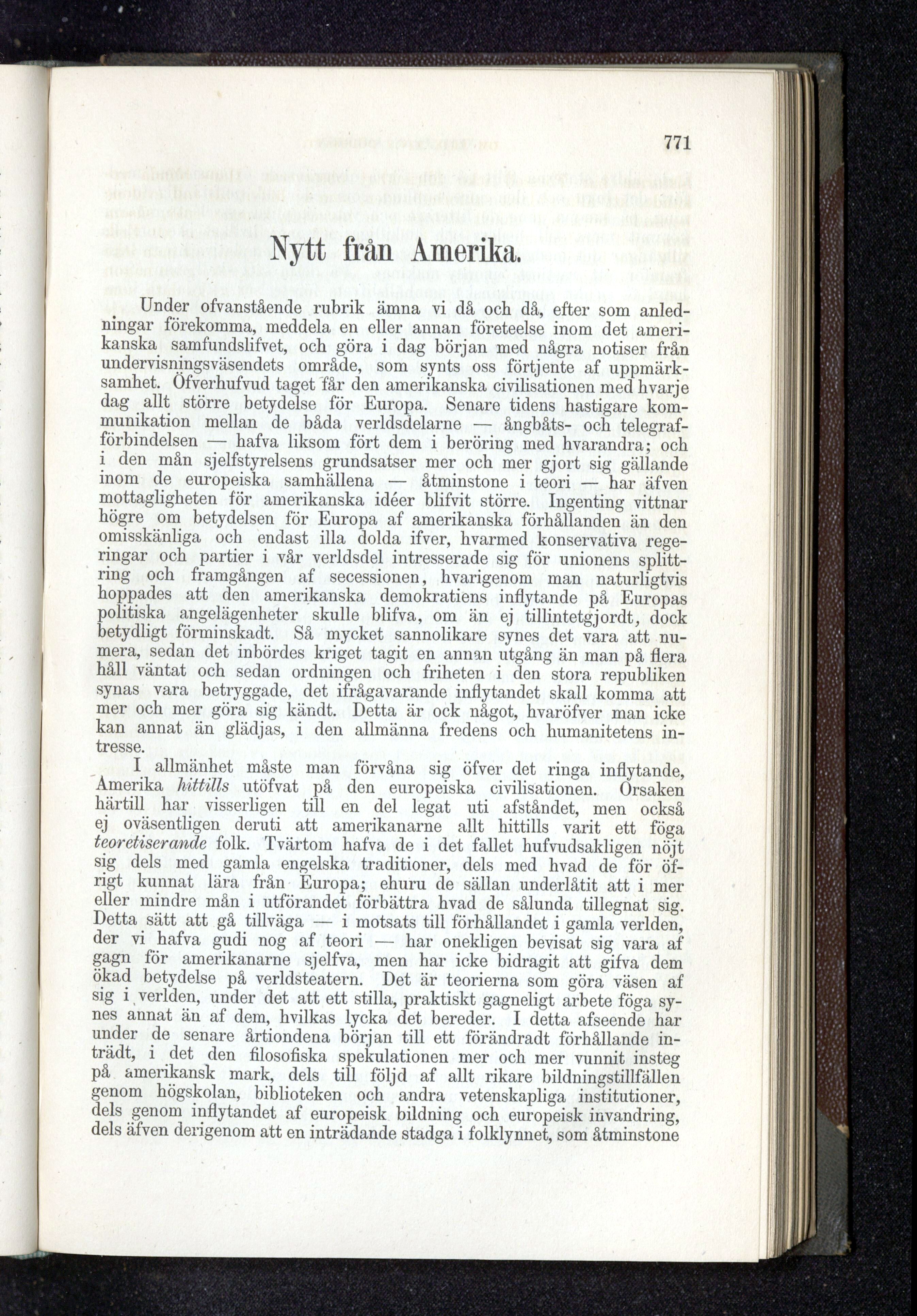 uppmärksamhet. öfverhufvud taget får den amerikanska civilisationen med hvarje