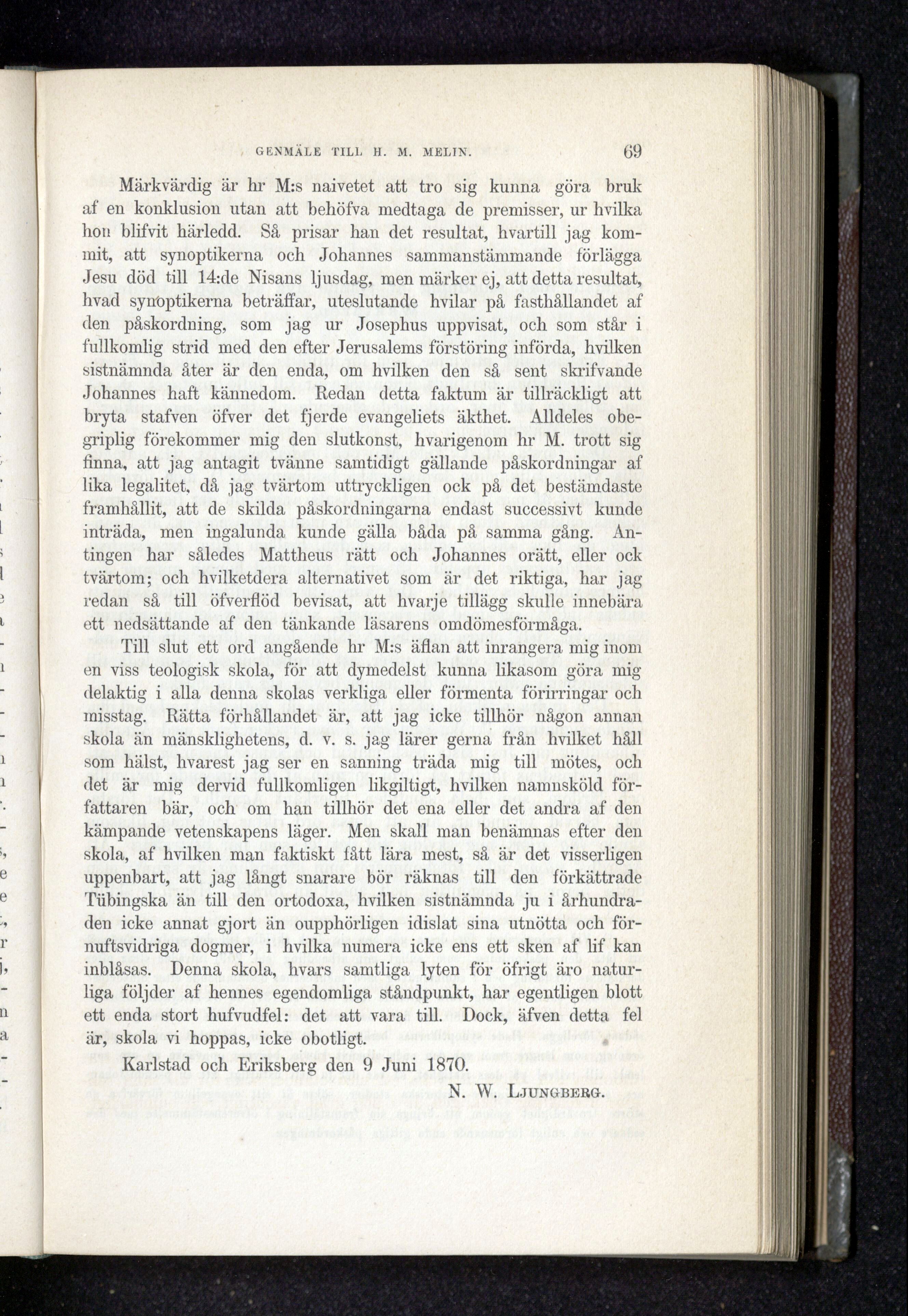 Full resolution (JPEG) - On this page / på denna sida - Sjunde häftet, Juli - Genmäle till H. M. Melin angående frågorna om Jesu dödsdag och det fjerde evangeliets äkthet