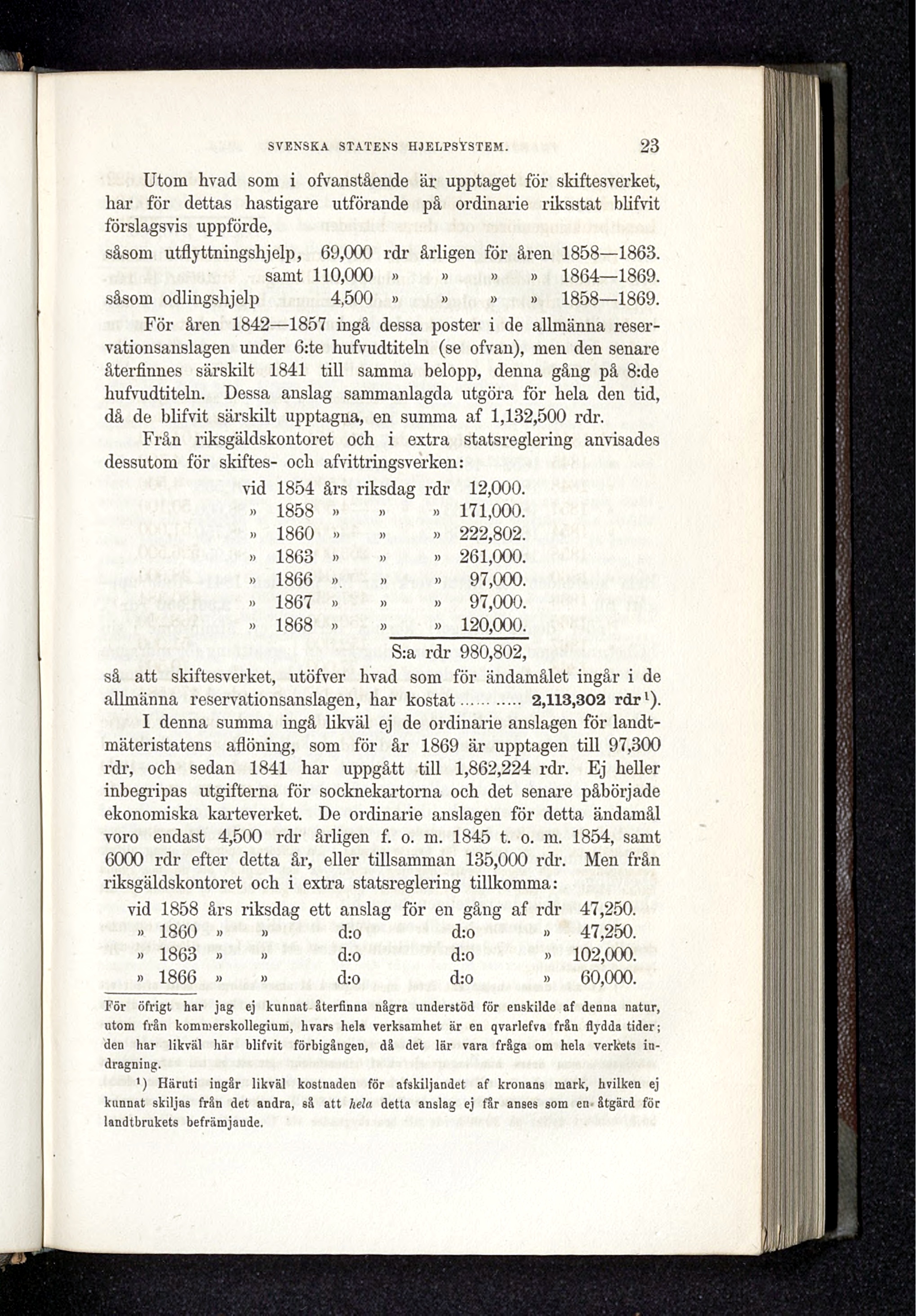 såsom utflyttningshjelp, 69,000 rdrårligen föråren 1858—1863.