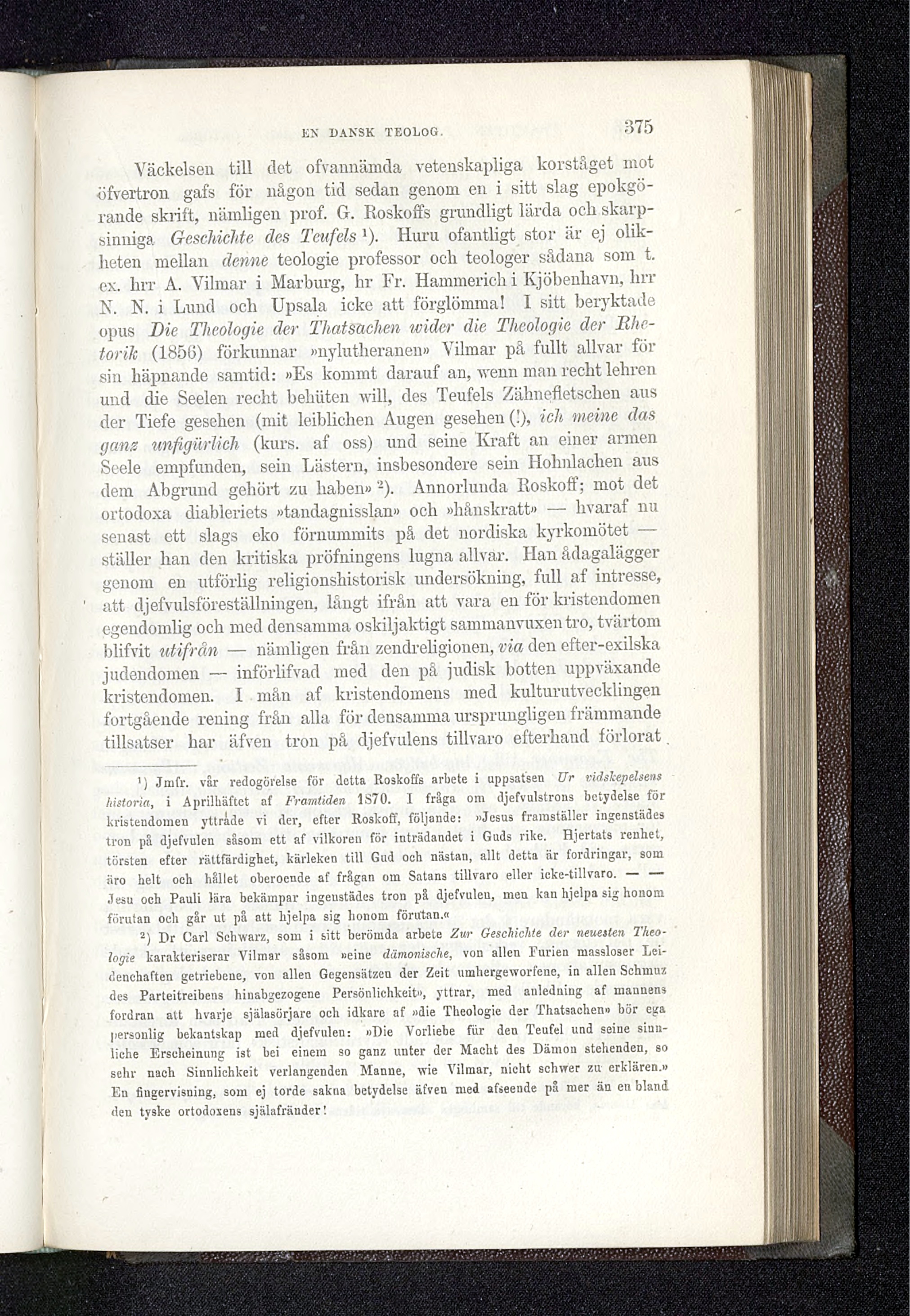 2 ) Dr Carl Schwarz, som i sitt berömda arbete Zur Geschichte der neuesten Theo-