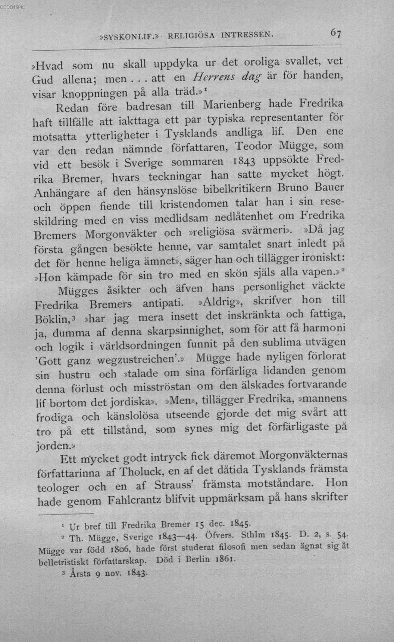 1 Ur bref till Fredrika Bremer 15 dec. 1845.