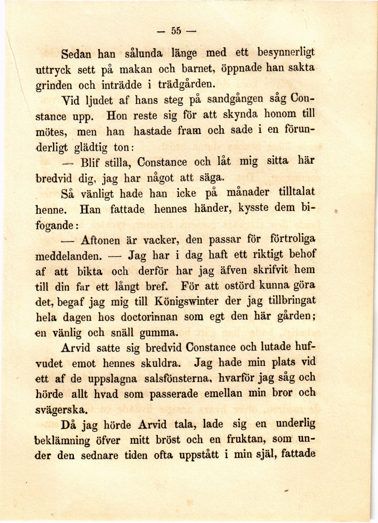 Arvid satte sig bredvid Constance och lutade