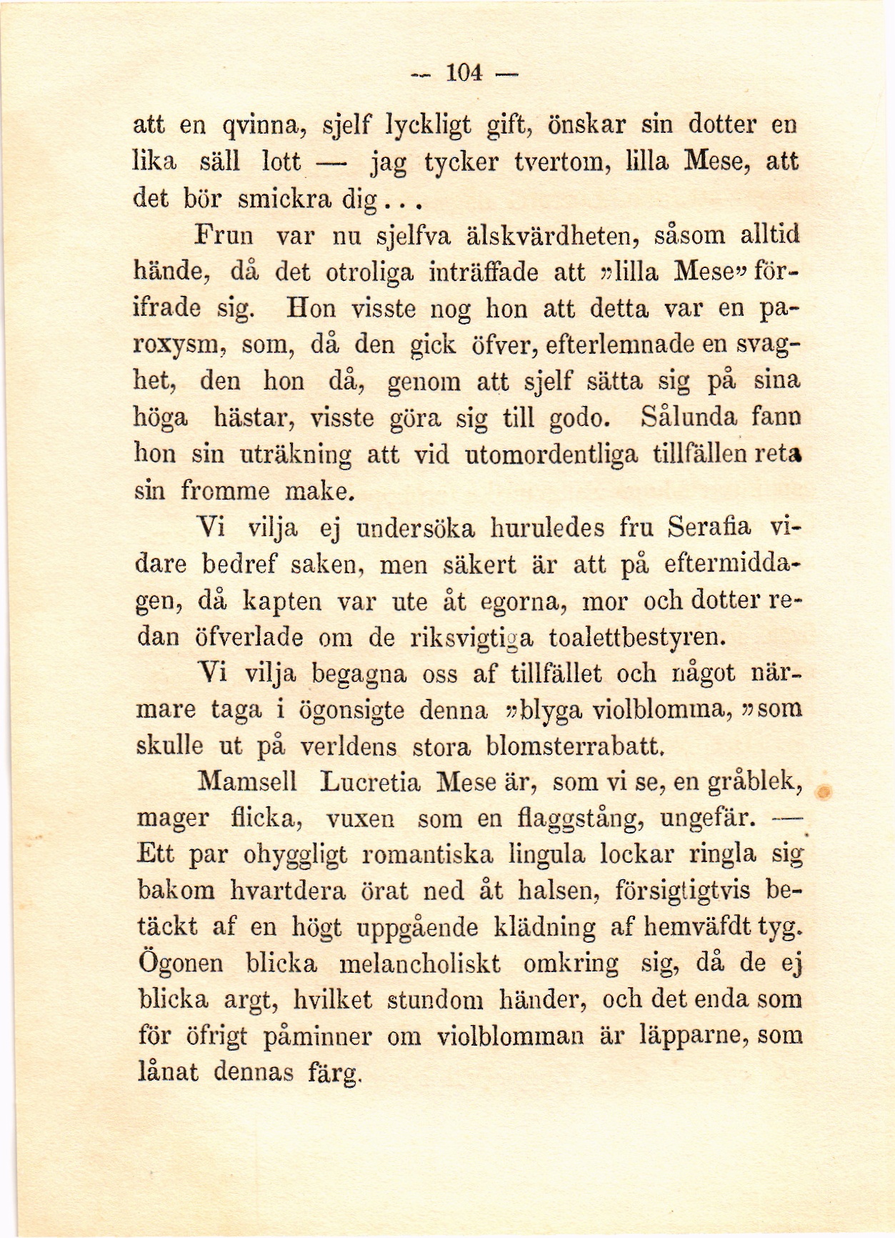 Mamsell Lucretia Mese är, som vi se, en gråblek,