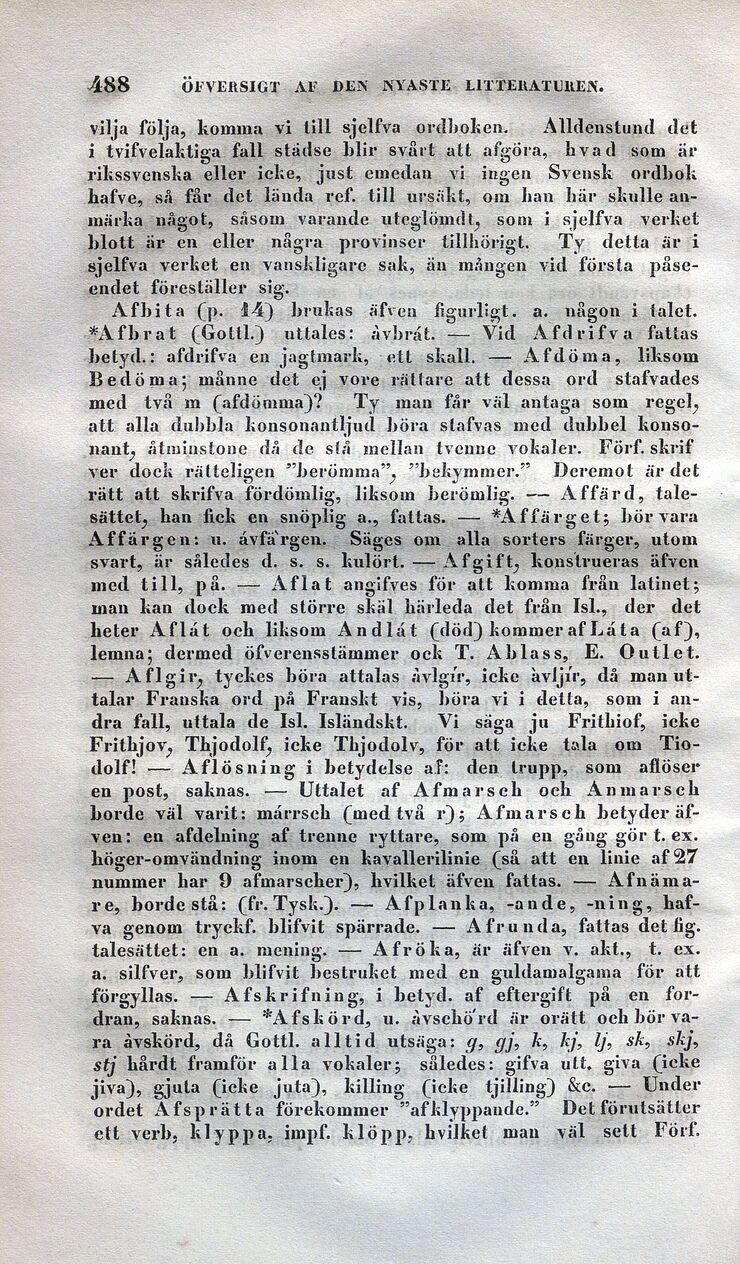 Full resolution (JPEG) - On this page / på denna sida - Häfte V - Öfversigt af den nyaste Litteraturen - Språkvetenskaper - [77] Almqvist, Ordbok öfver Svenska Språket