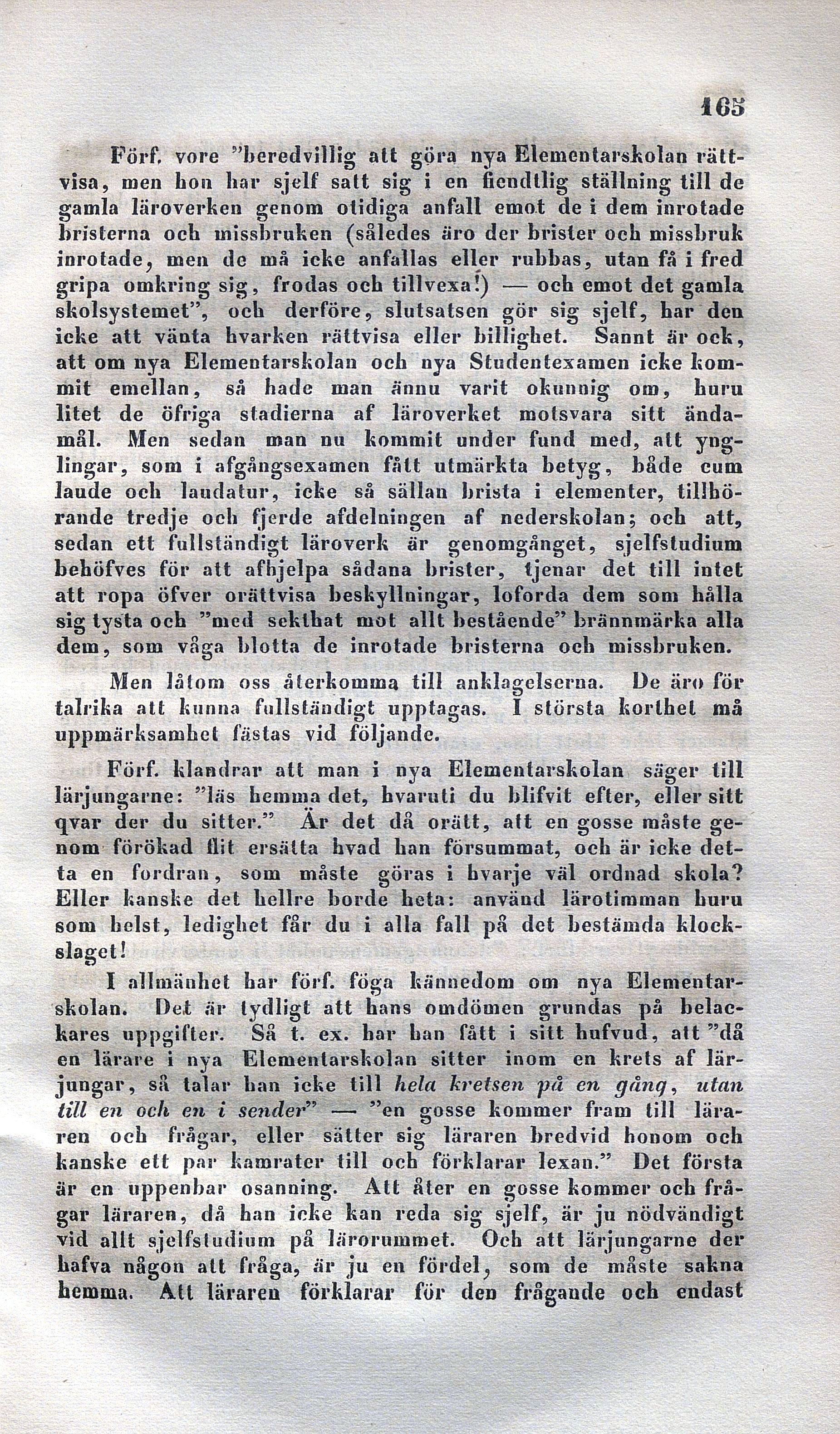 Förf. klandrar att man i nya Elementarskolan, säger till