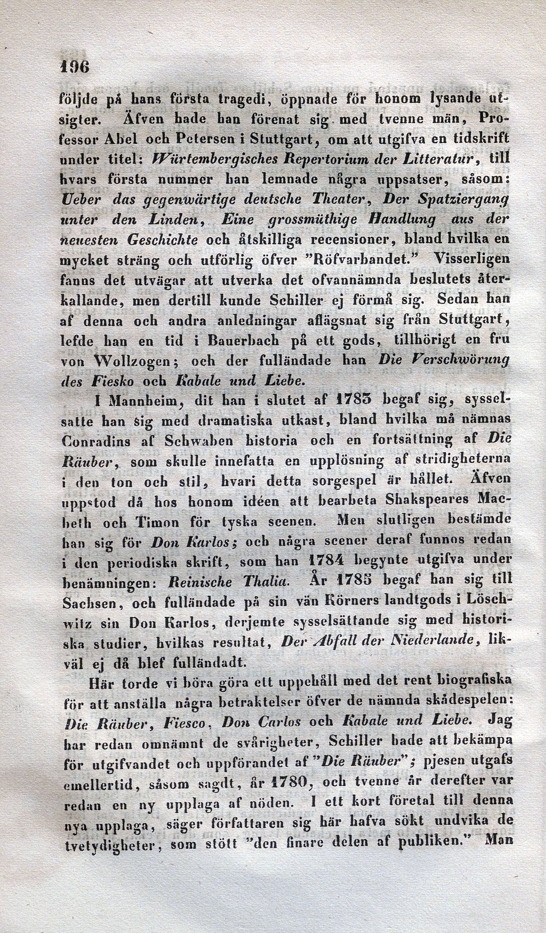 för utgifvandet och uppförandet af ”Die Riuber” ; pjesen utgafs