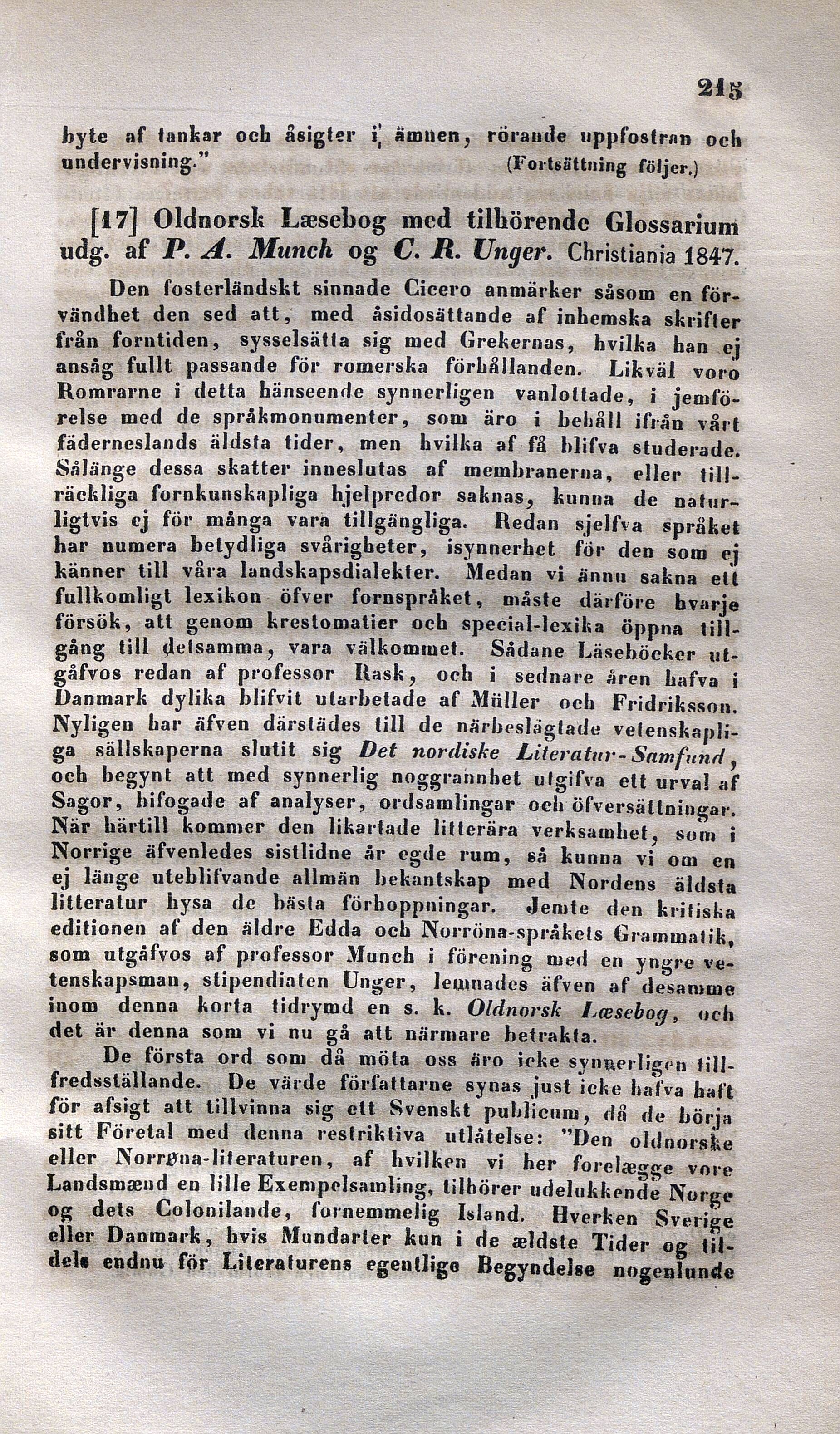 Full resolution (JPEG) - On this page / på denna sida - Häfte IV - Öfversikt öfver den nyaste Litteraturen - [16] Tidskrift för Lärare och Uppfostrare, utgifven af J. A. Dahlström, C. Ekendahl m. fl. - [17] Oldnorsk Læsebog med tilhörende Glossarium, udg. af P. A. Munch og C. R. Unger