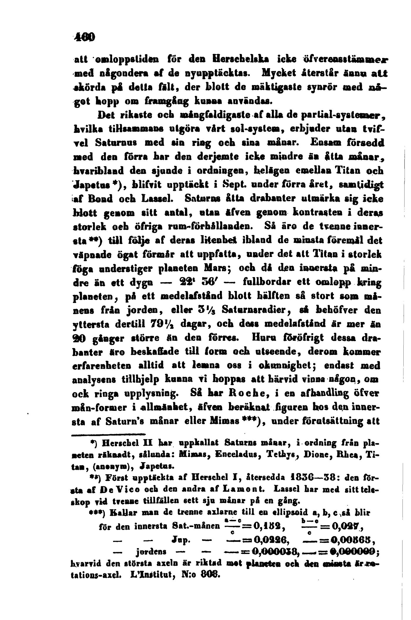 af Bond och Lassel. Saturas åtta drabanter utmärka sig icke