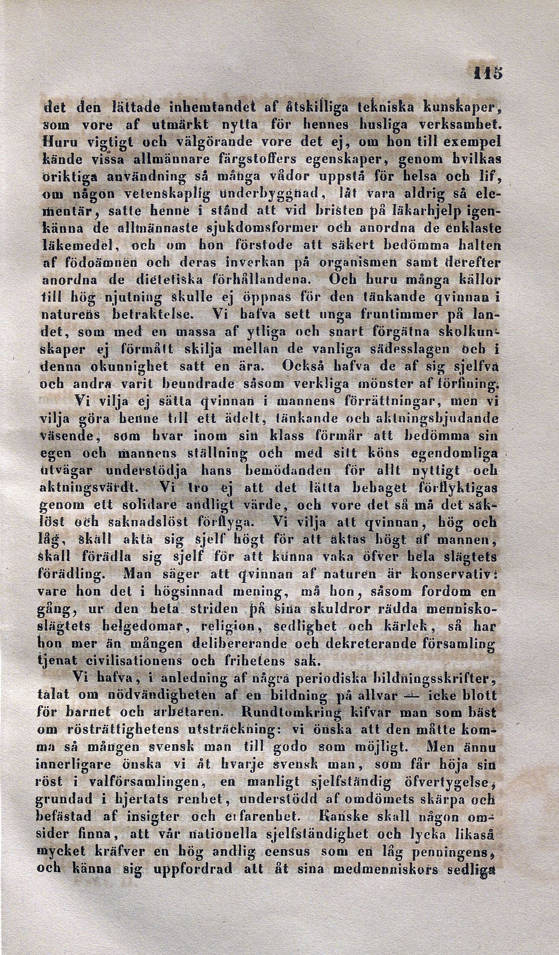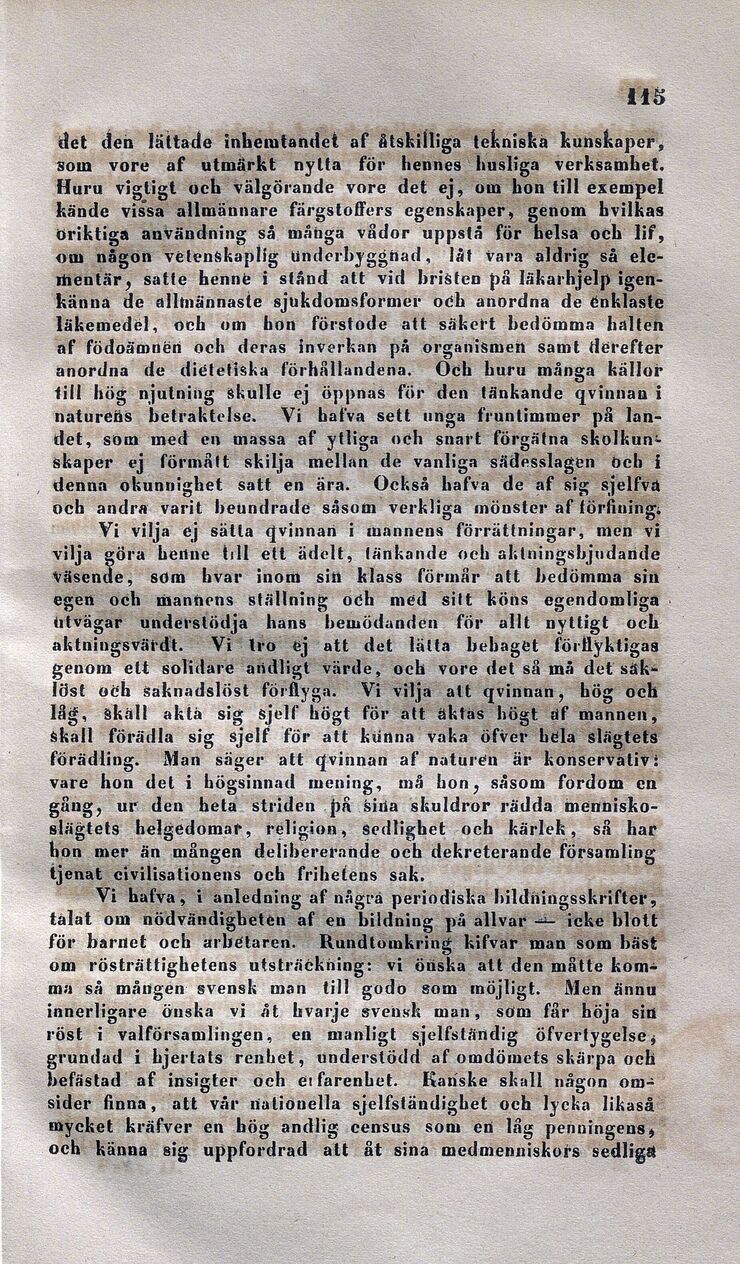 till hög njutning skulle ej öppnas för den tänkande qvinnan i