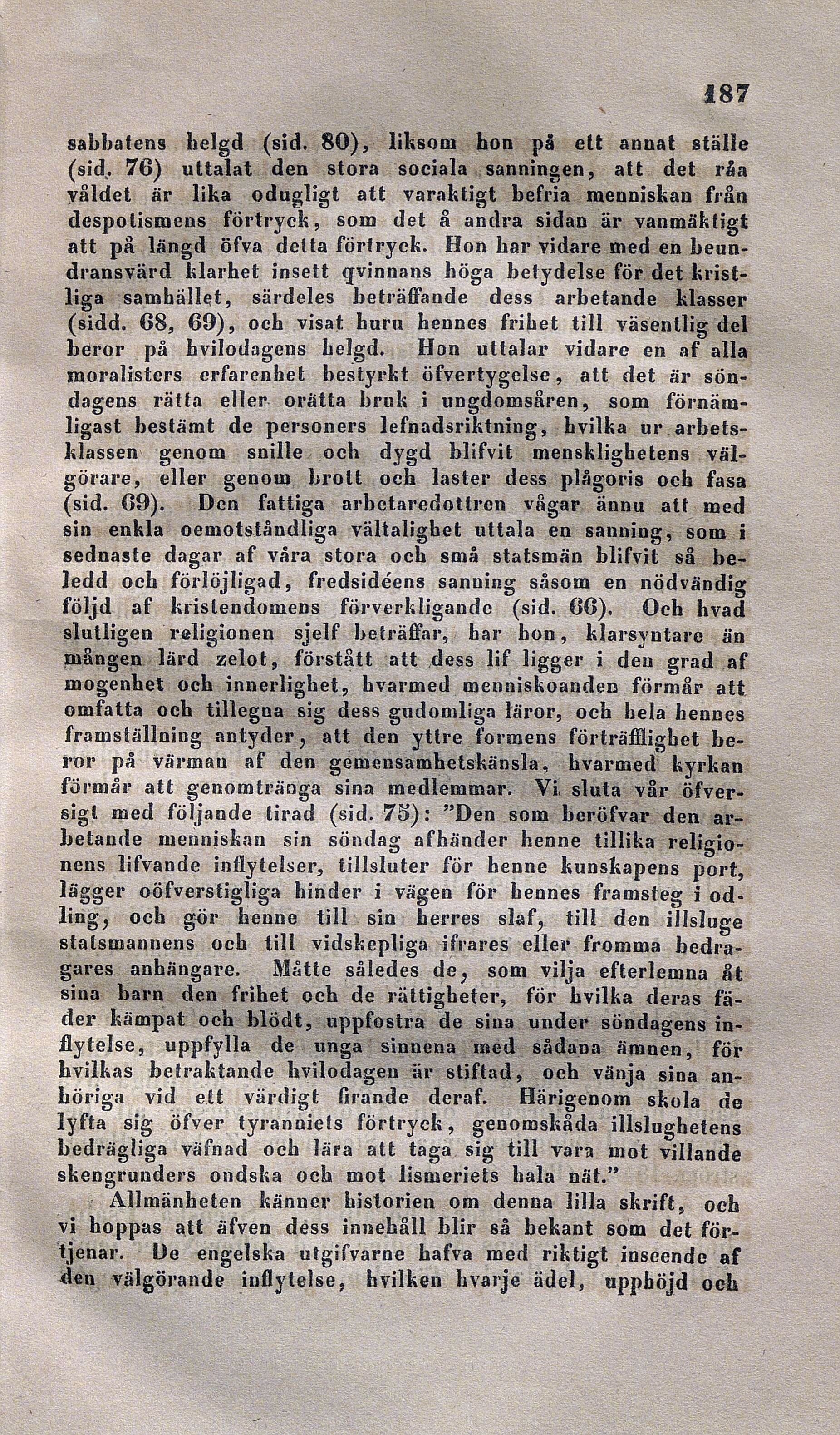 sabbatens helgd : (sid. 80), liksom hon på ett annat ställe