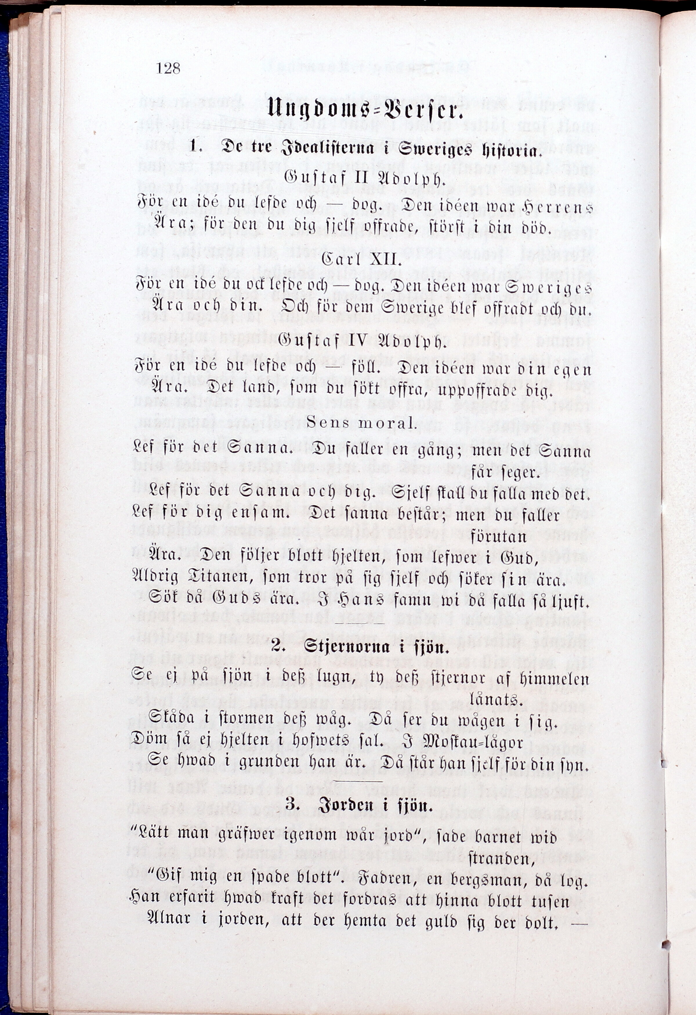 Full resolution (JPEG) - On this page / på denna sida - Ungdomsverser. Af P. Wieselgren - 1. De tre Idealisterna i Sweriges historia - 2. Stjernorna i sjön - 3. Jorden i sjön