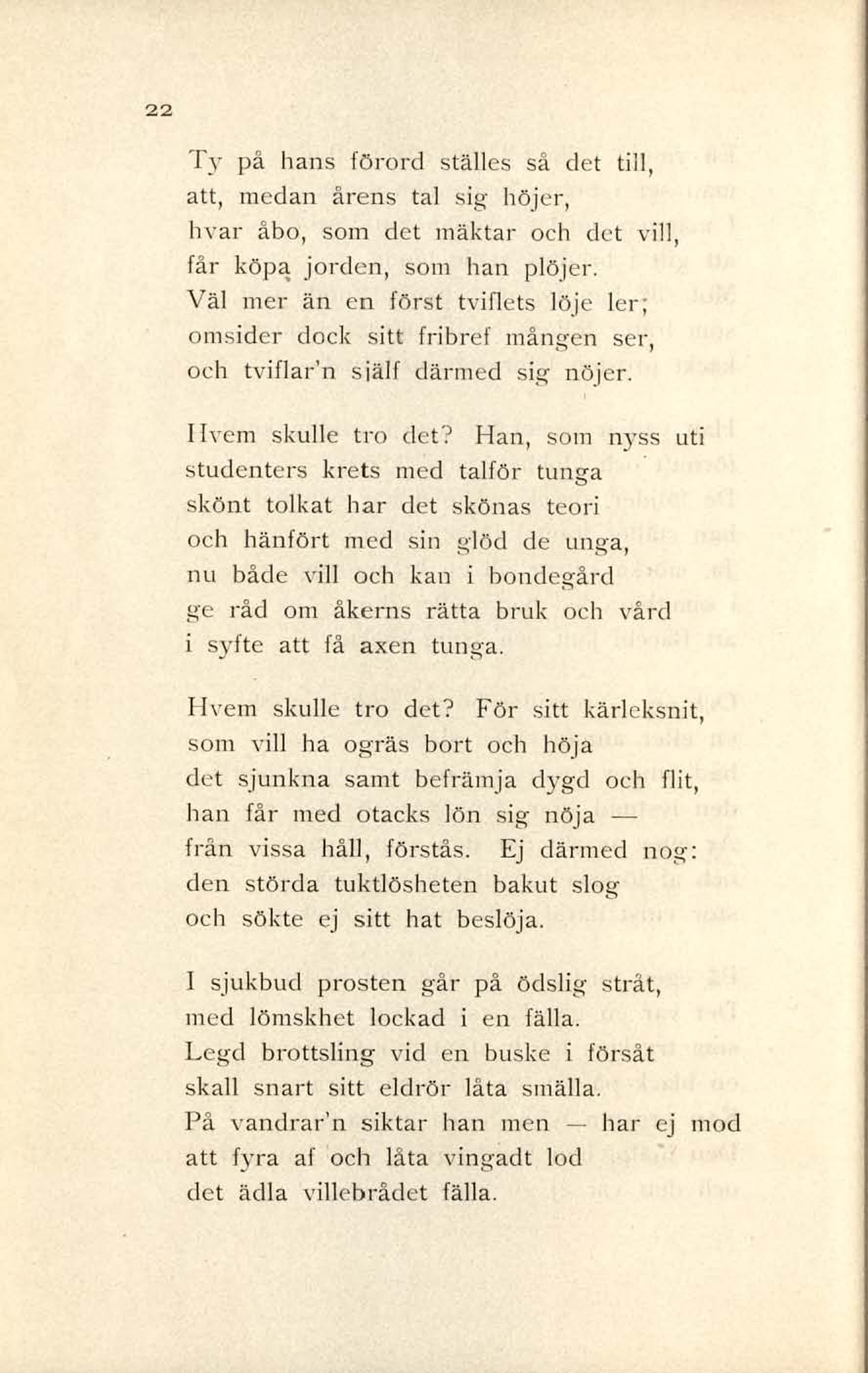 och tviflar’n själf därmed sig nöjer.