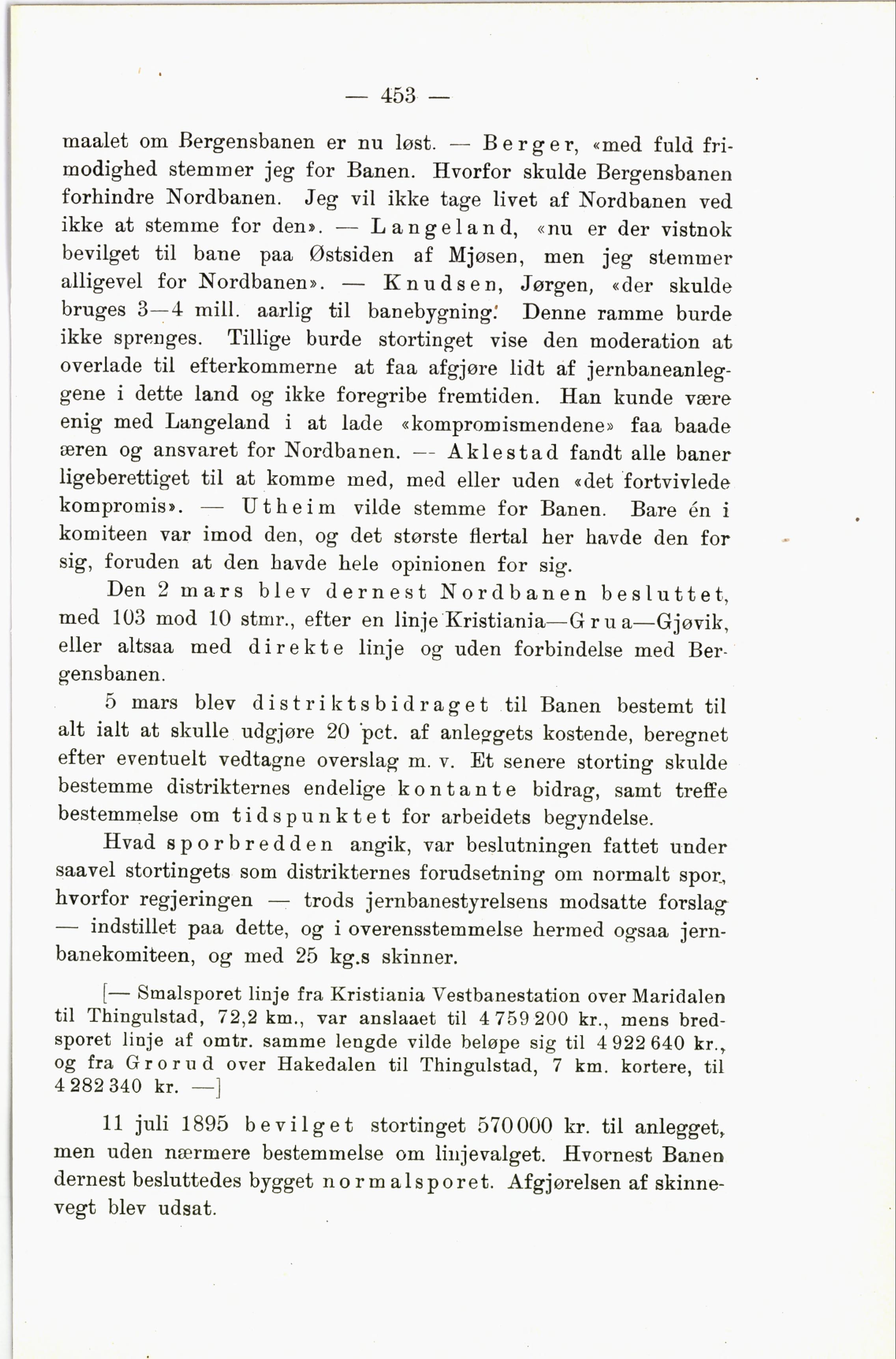 med 103 mod 10 stmr., efter en linje Kristiania—Gr u a—Gjøvik,