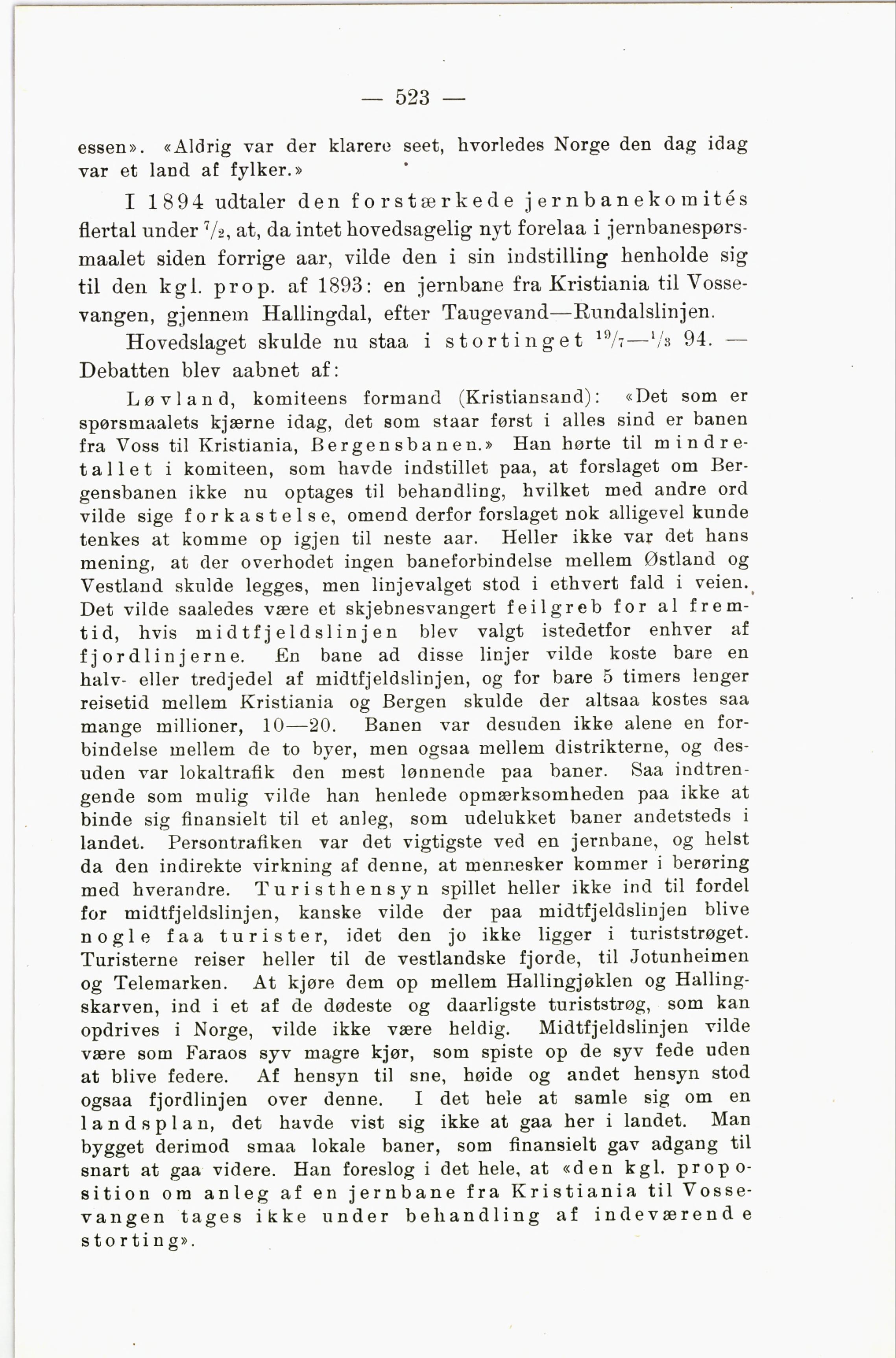 til den kgl. prop. af 1893: en jernbane fra Kristiania til Vosse
