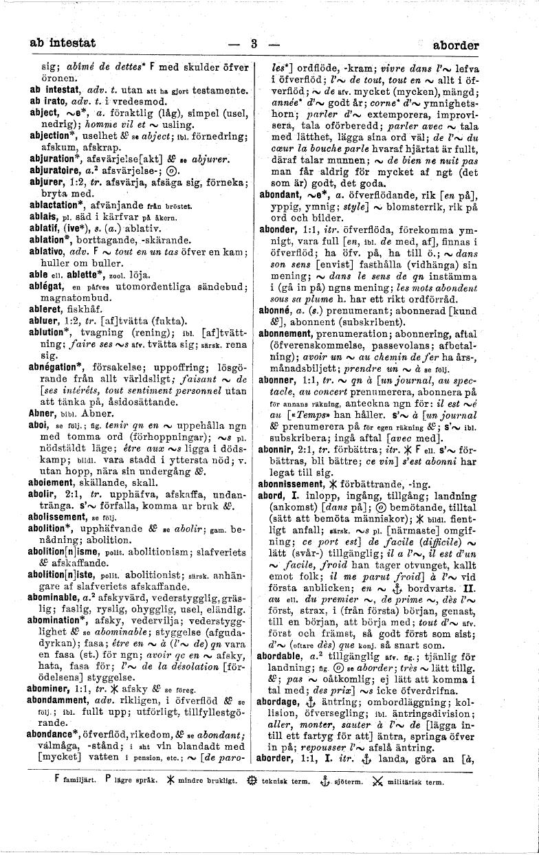 F familjärt. P lägre språk. [[mindre brukligt]] mindre brukligt. [[teknisk term]] teknisk term. [[sjöterm]] sjöterm. ~ militärisk term.