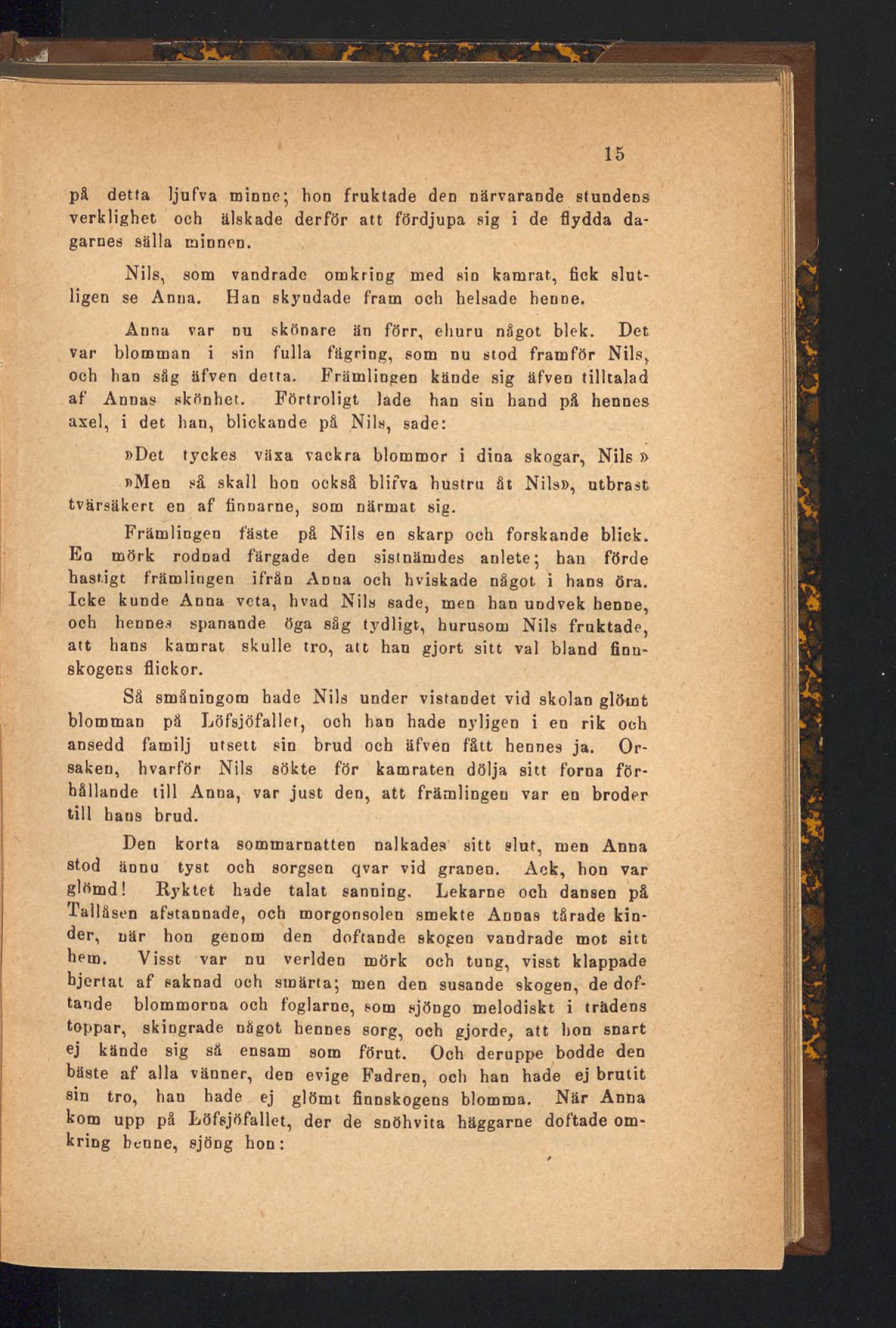 sin tro, han hade ej glömt finnskogens blomma. När Anna