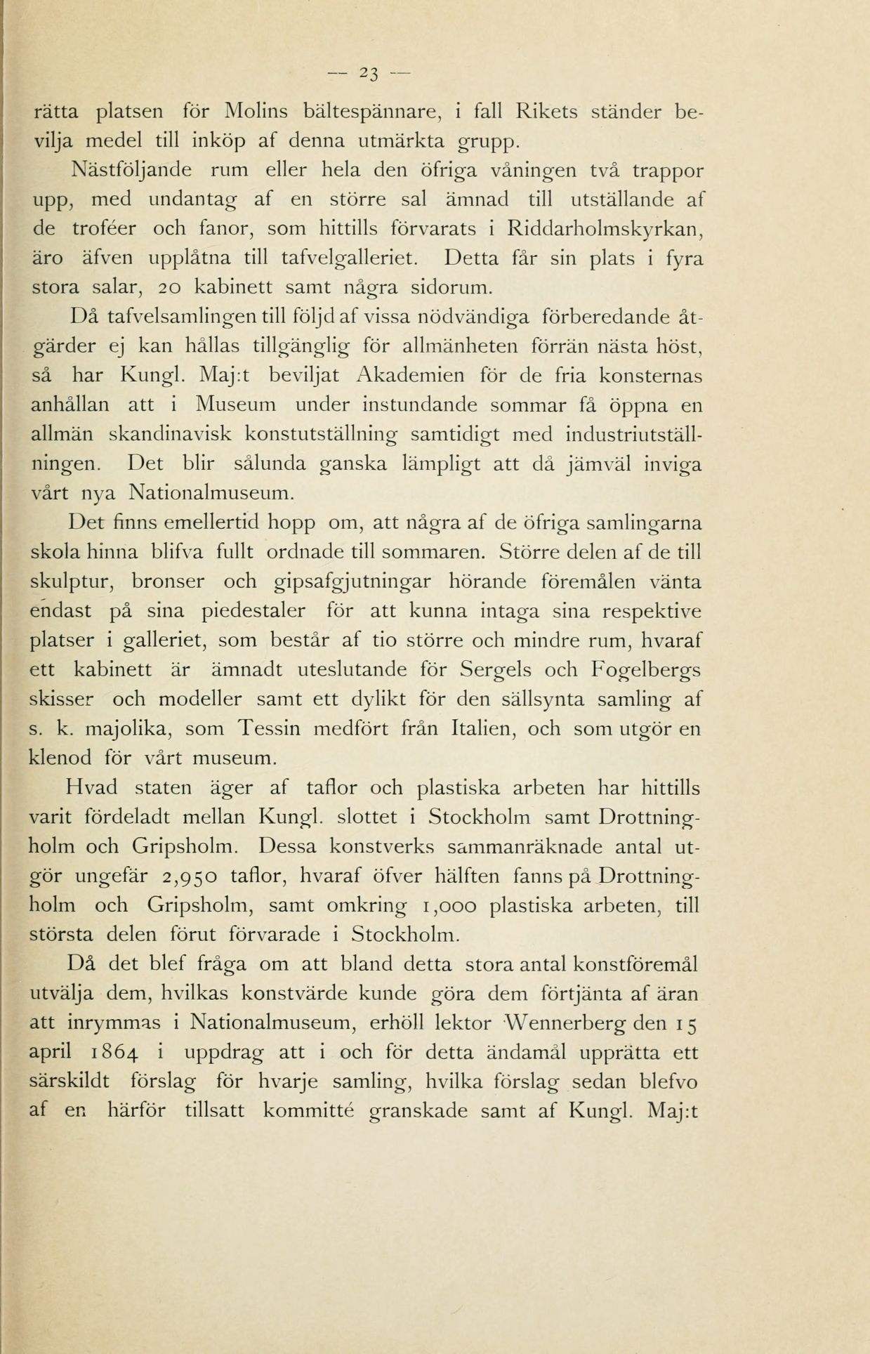 att inrymmas i Nationalmuseum, erhöll lektor Wennerberg den 15