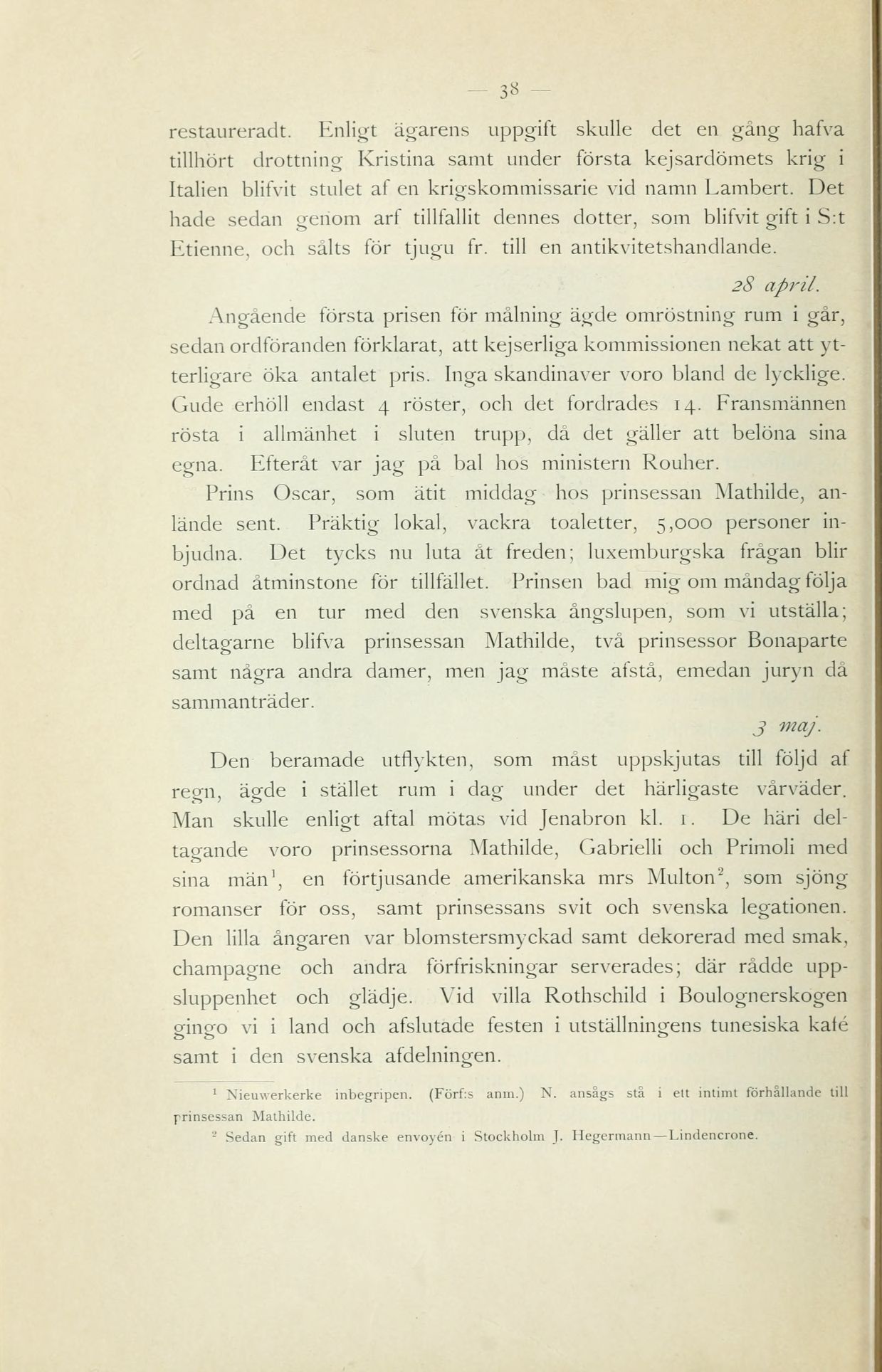 deltagarne blifva prinsessan Mathilde, två prinsessor Bonaparte