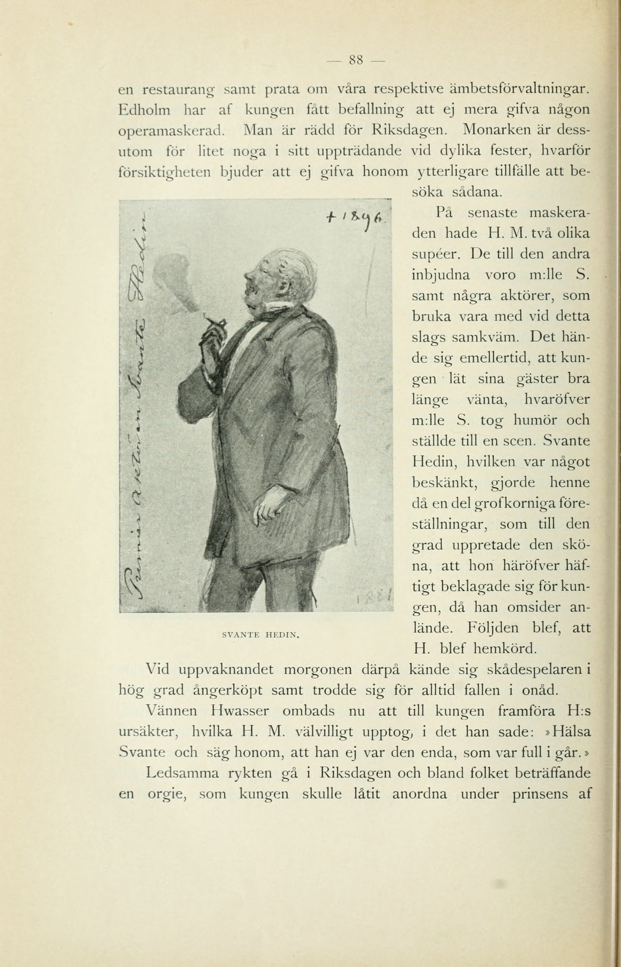 dessutom för litet noga i sitt uppträdande vid dylika fester, hvarför