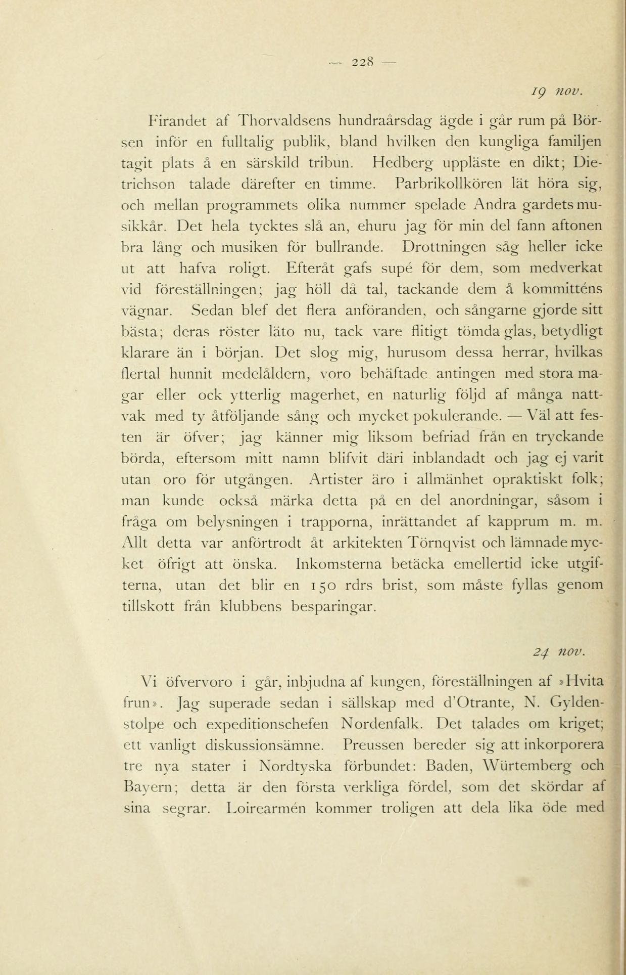 vid föreställningen; jag höll då tal, tackande dem å kommitténs