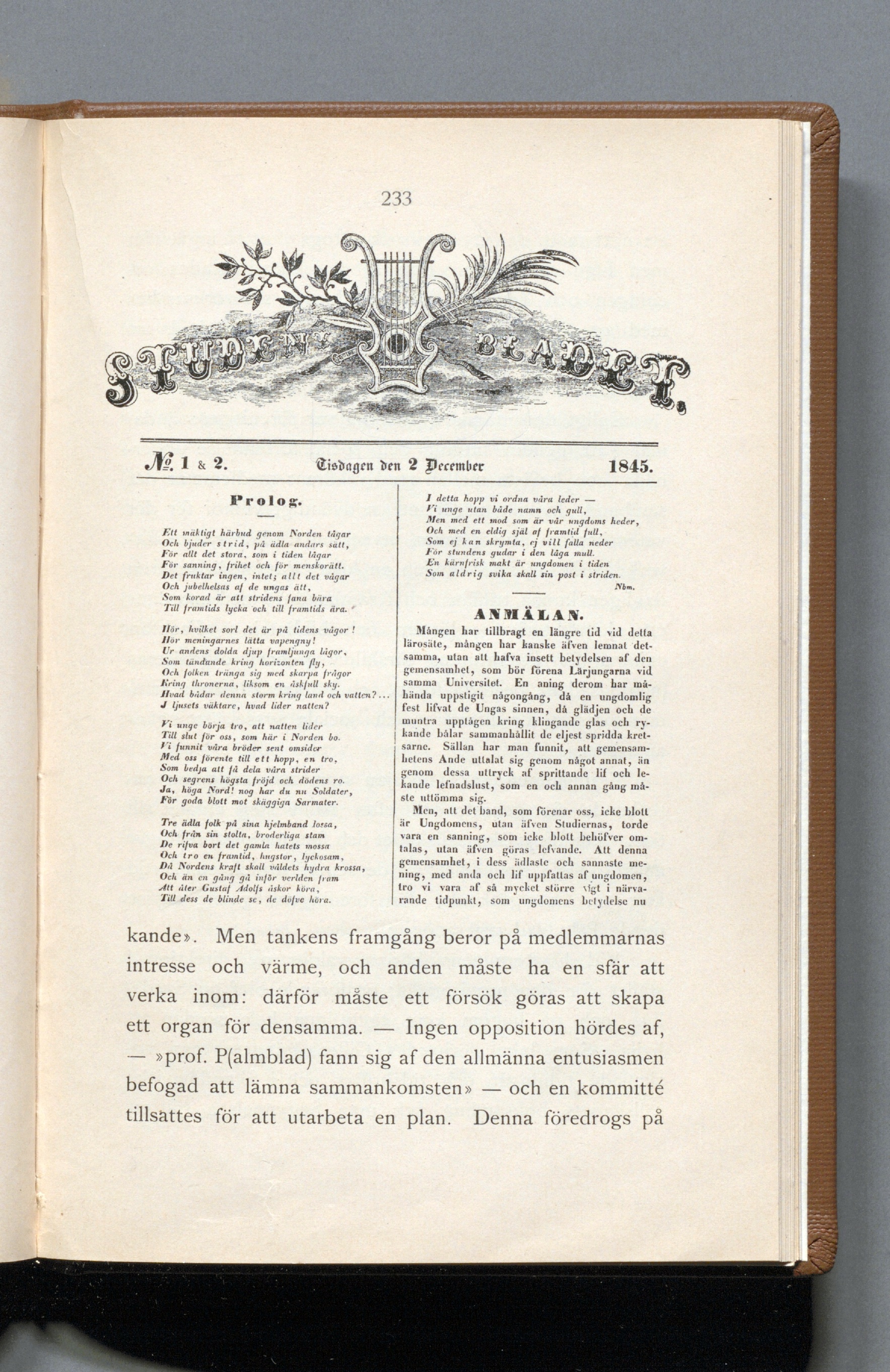 1 & 2. Tisdagen den 2 December 1845.