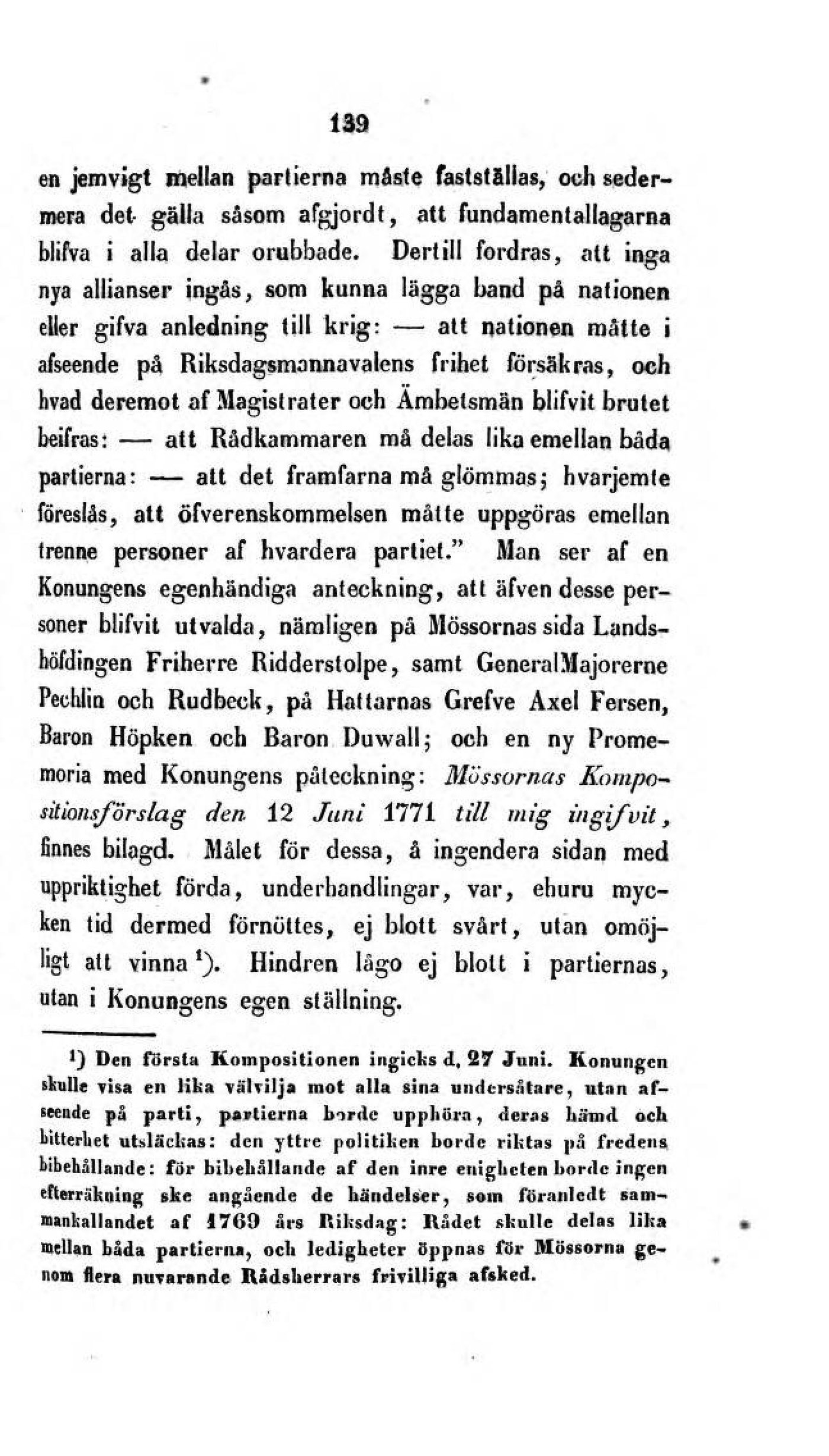 *) Den första Kompositionen ingicks d, 27 Jnni. Konungen