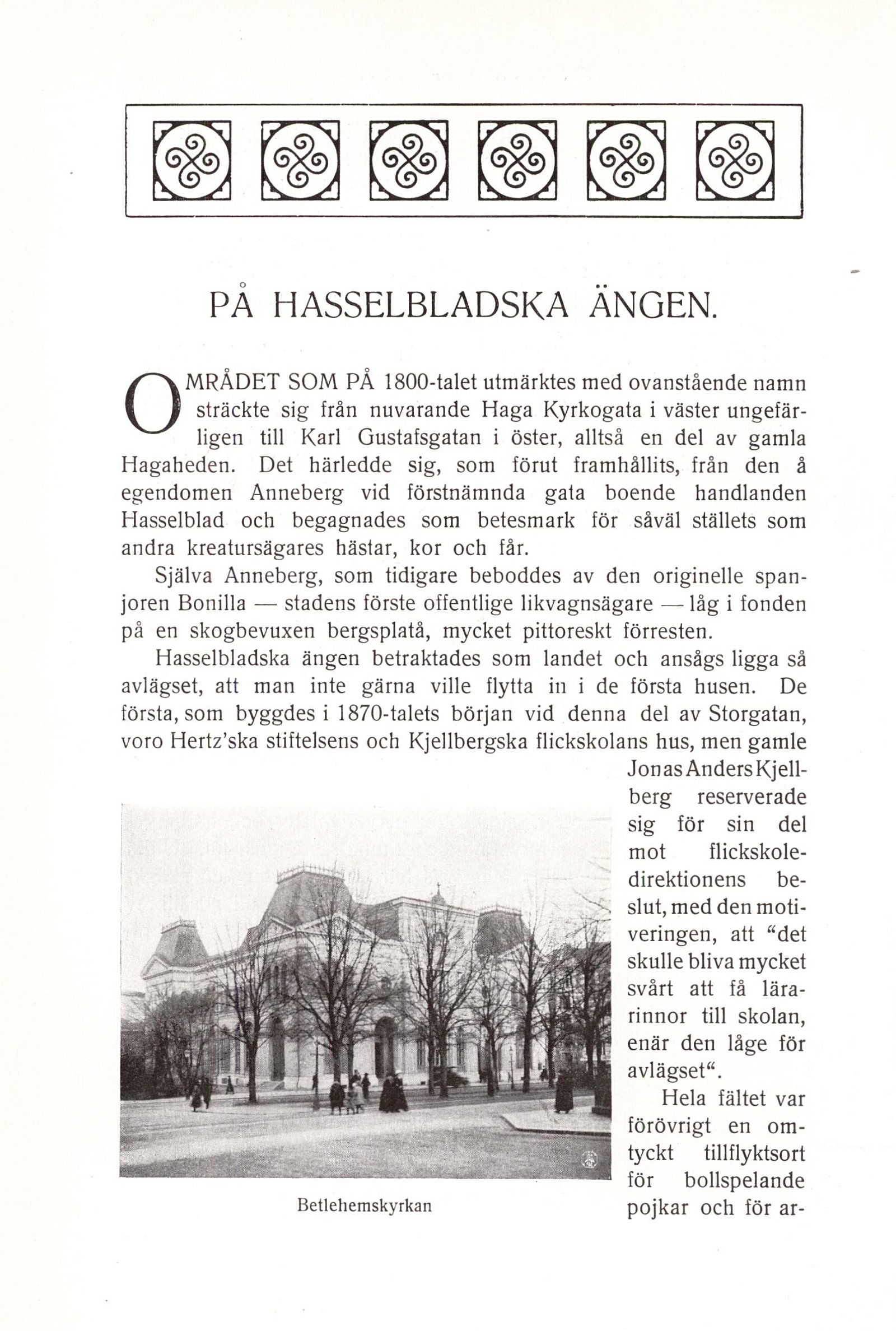 Hasselbladska ängen betraktades som landet och ansågs ligga så