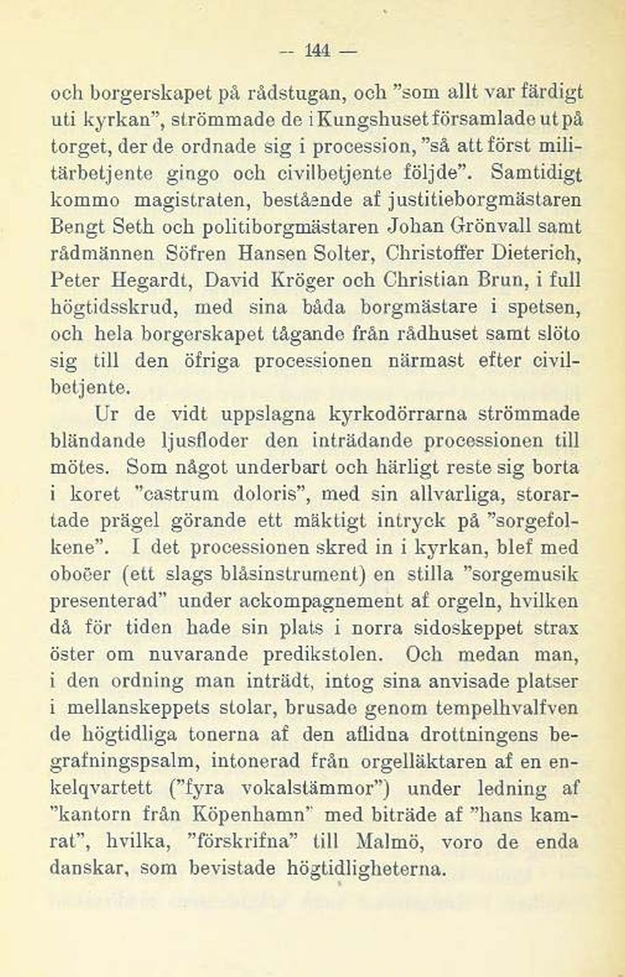 "sorgefolkene". I det processionen skred in i kyrkan, blef med