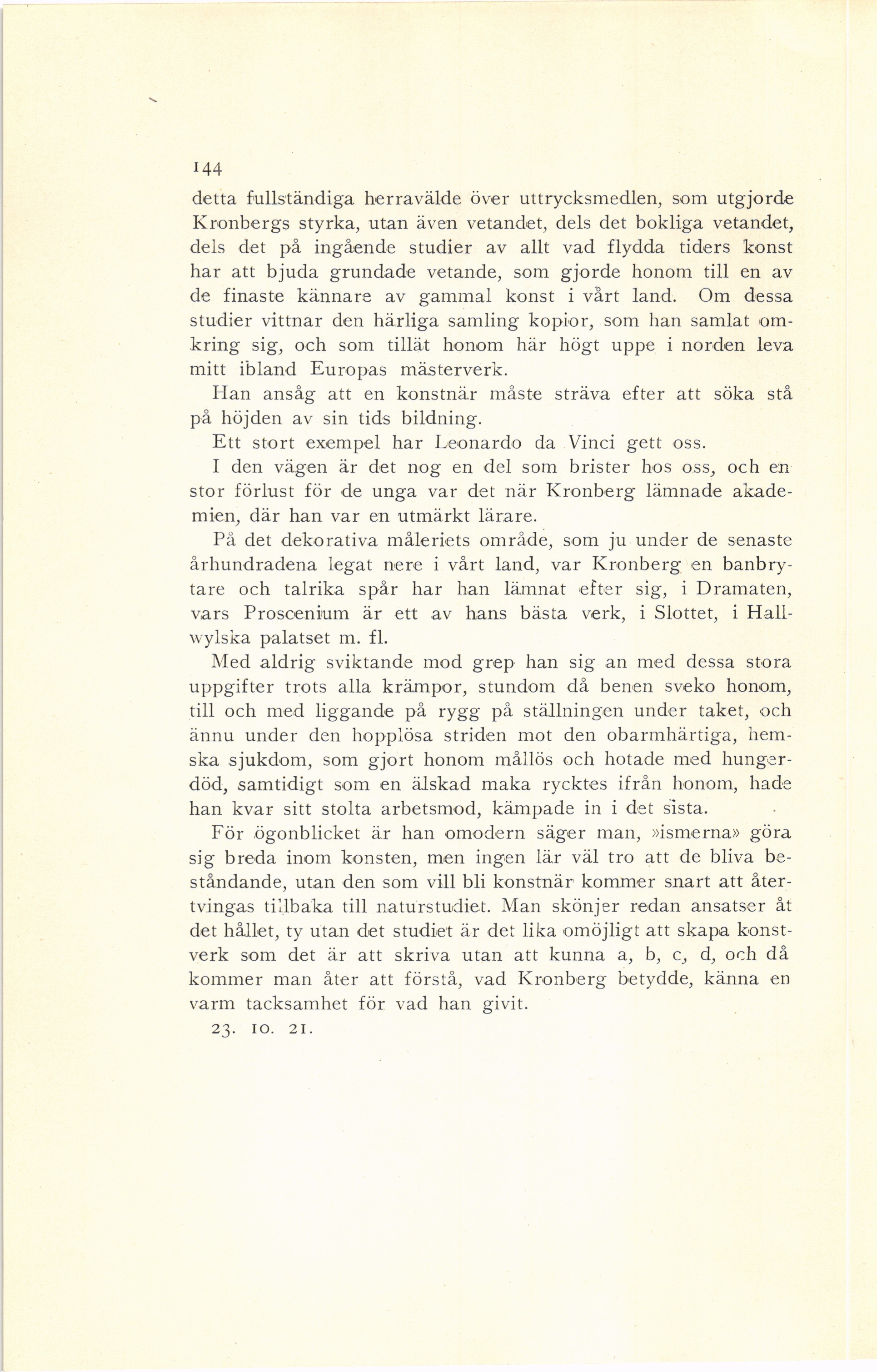 kommer man åter att förstå, vad Kronberg betydde, känna en