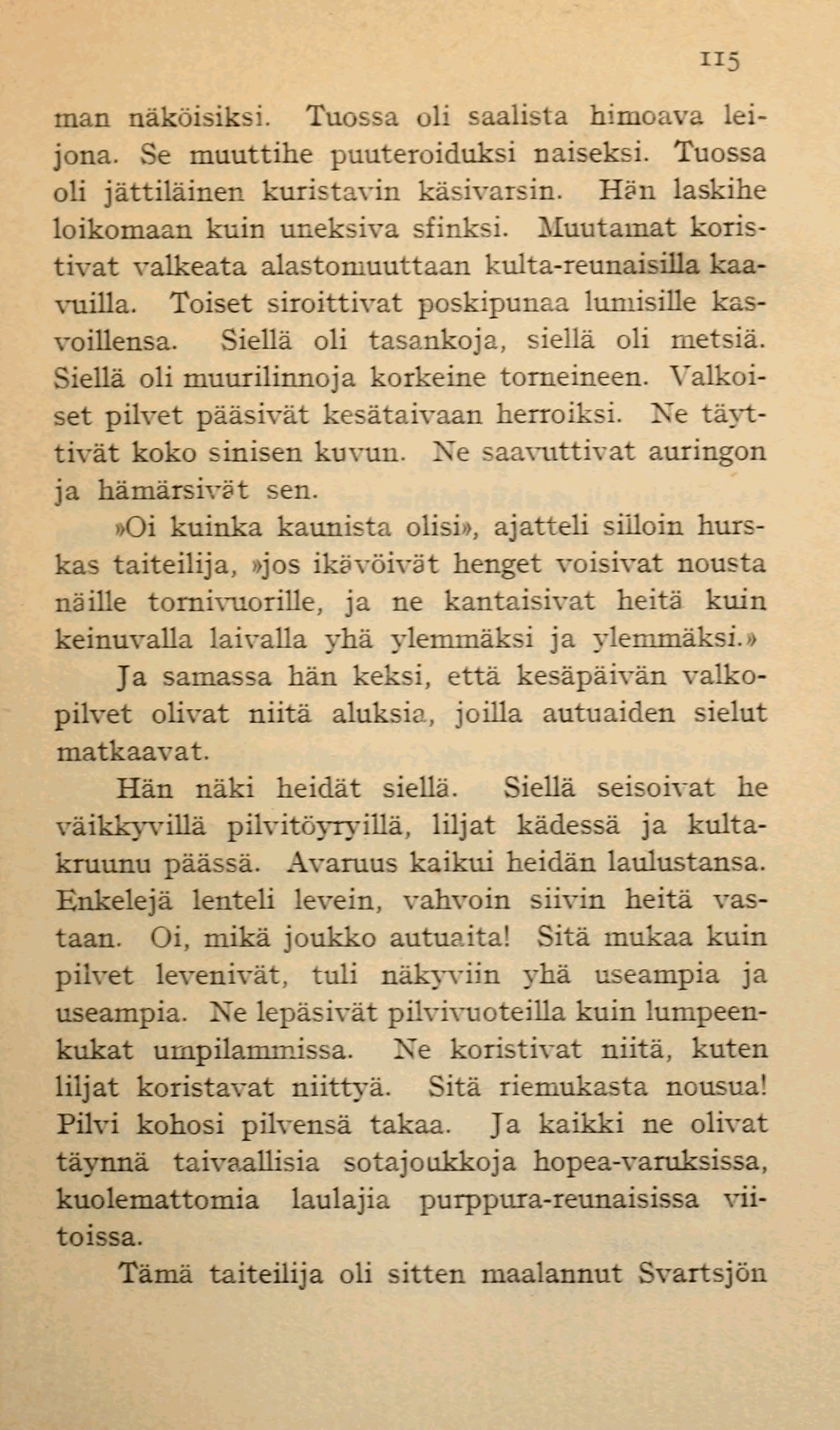»Oi kuinka kaunista olisi», ajatteli silloin