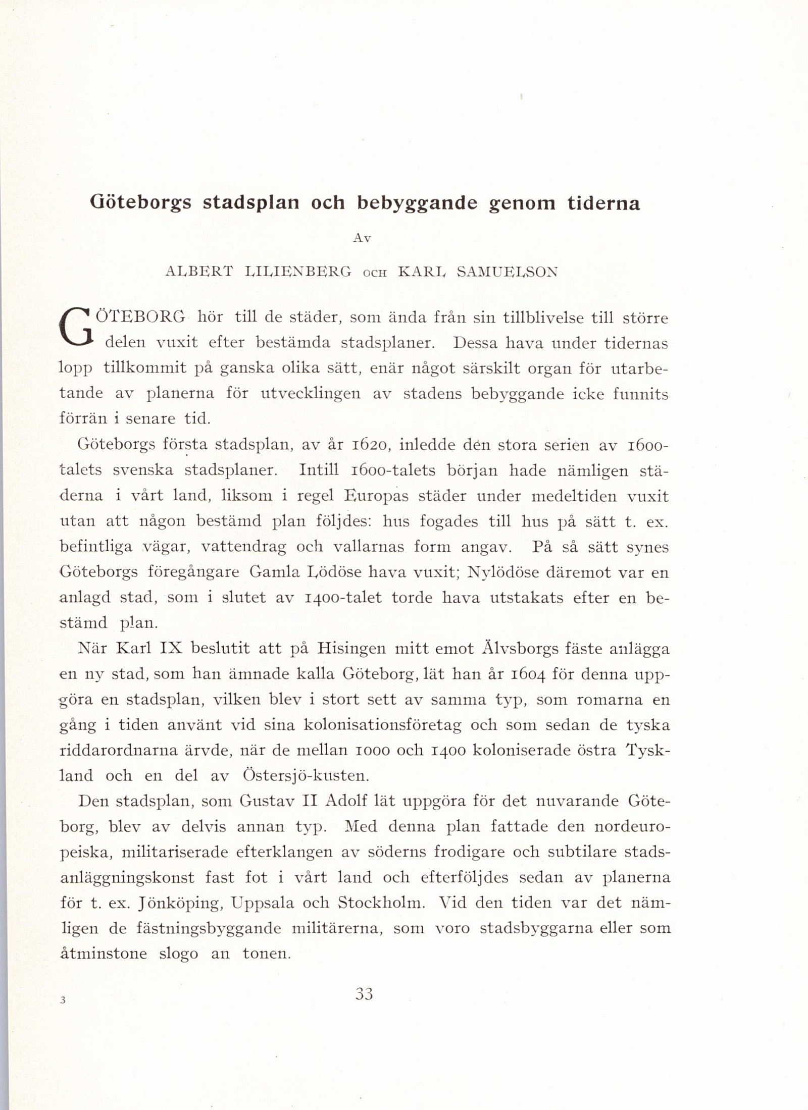 - Göteborgs stadsplan och bebyggande genom tiderna. Av ALBERT LILIENBERG och KARL SAMUELSON