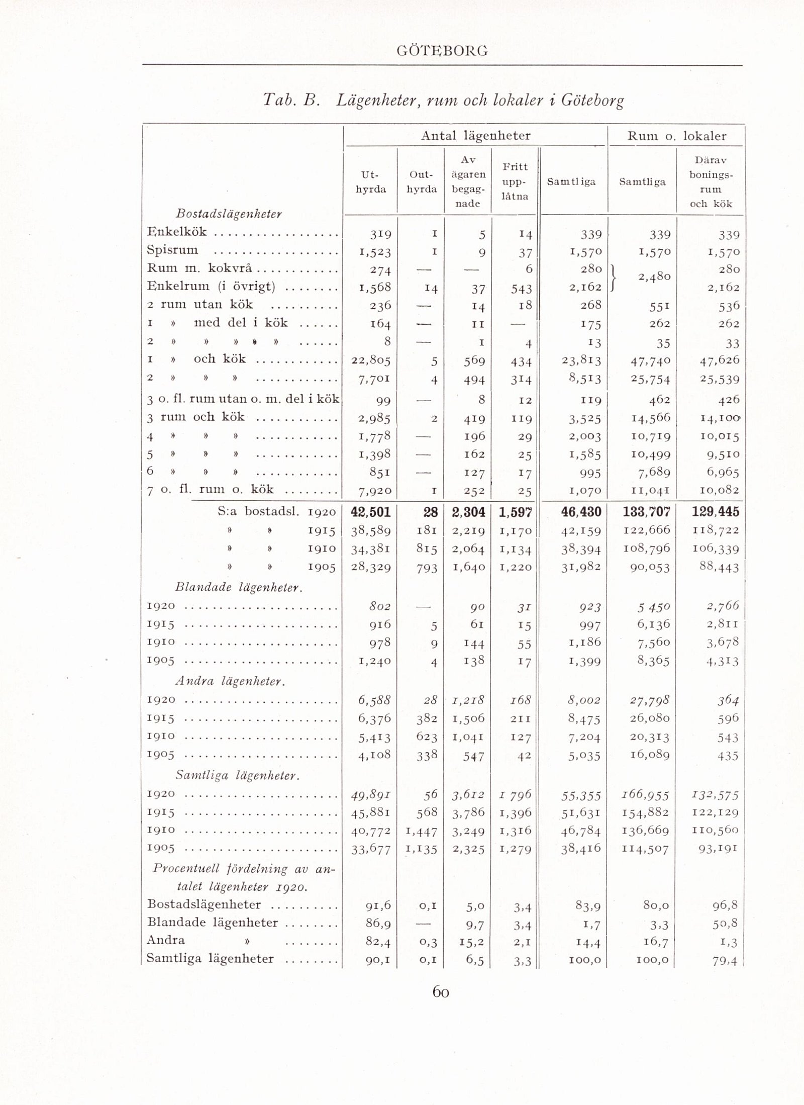 Tab. B. Lägenheter, rum och lokaler i Göteborg