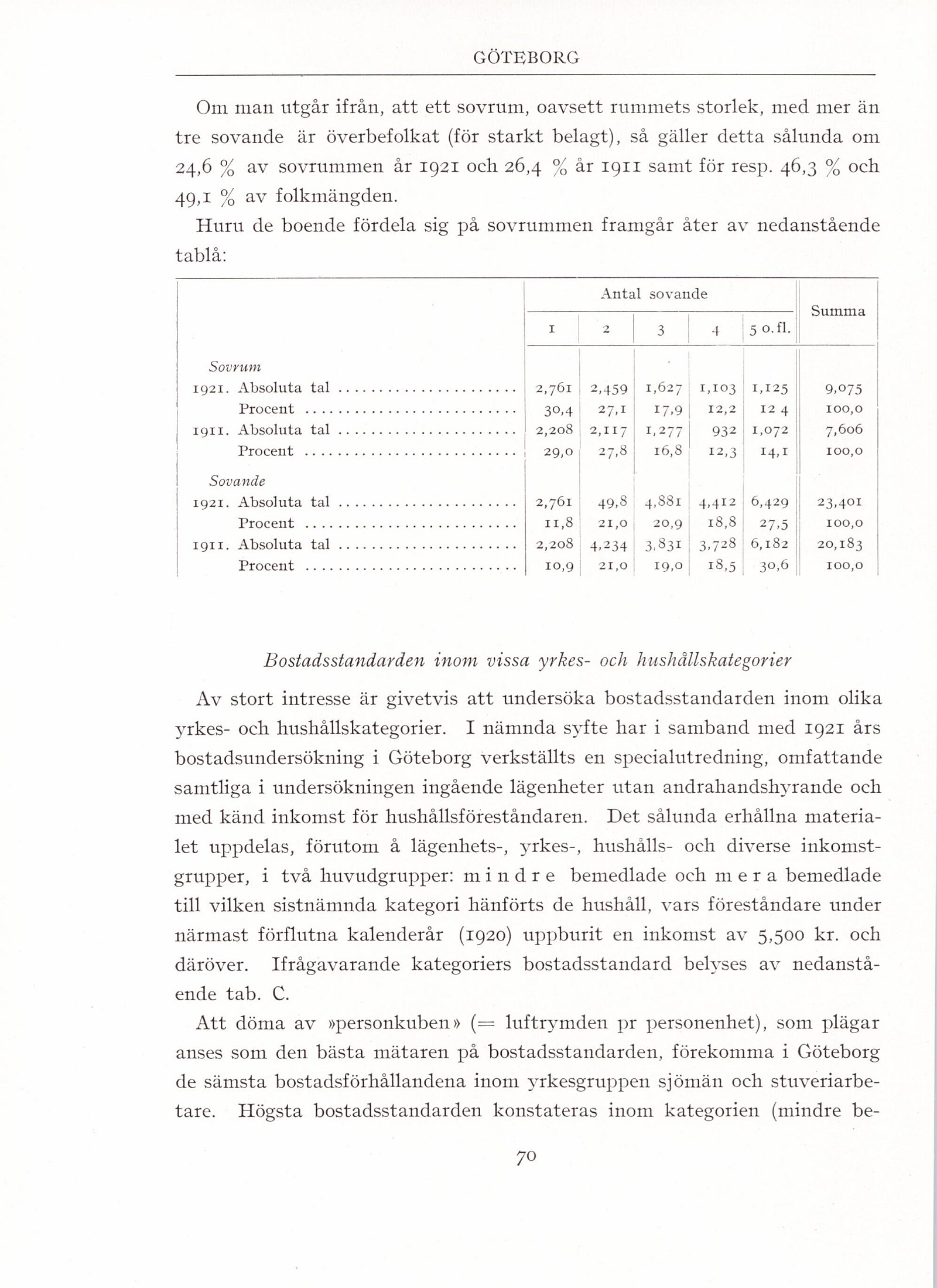 24,6 % av sovrummen år 1921 och 26,4 % år 1911 samt för resp. 46,3 % och
