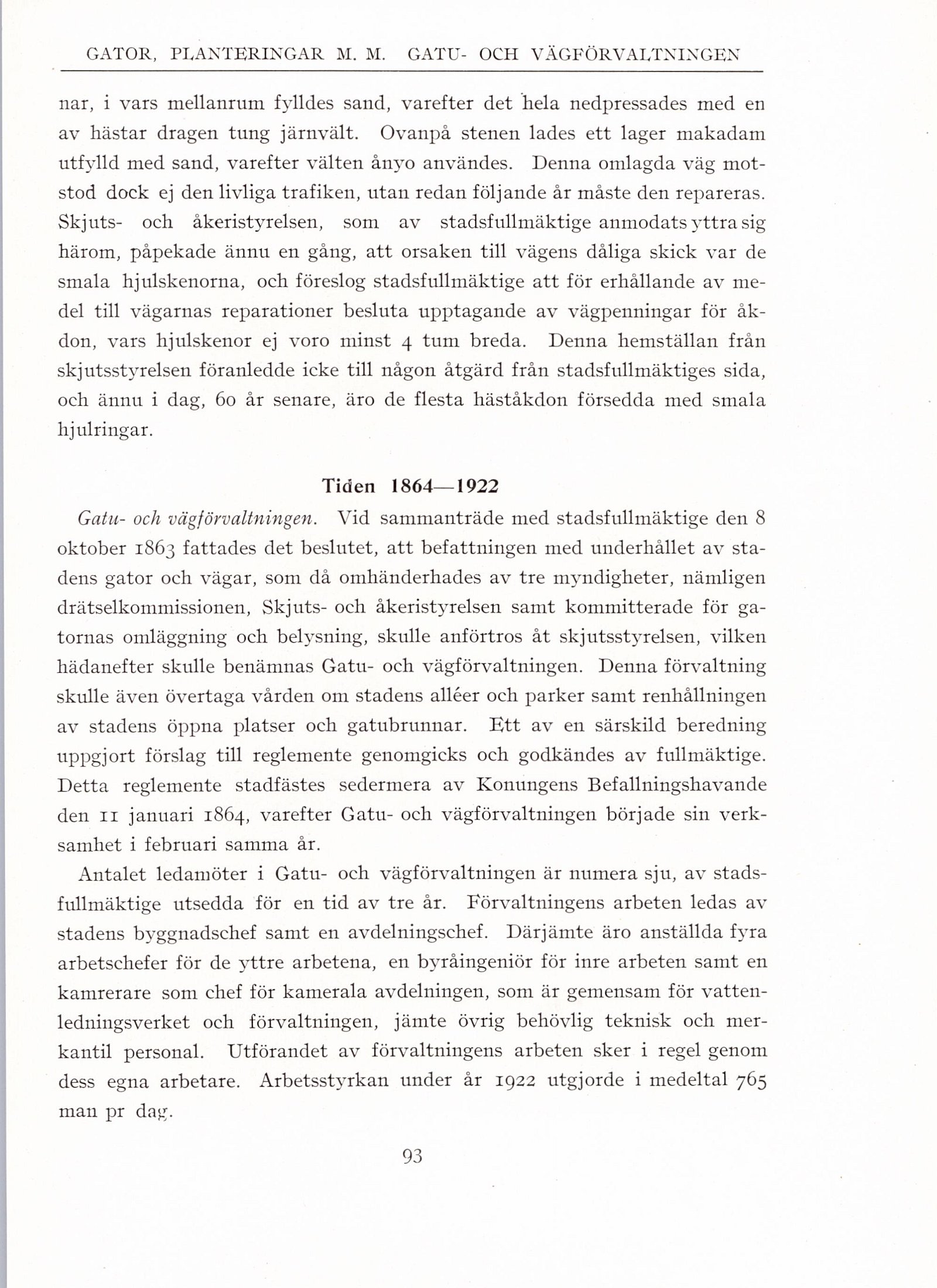 stadens gator och vägar, som då omhänderhades av tre myndigheter, nämligen
