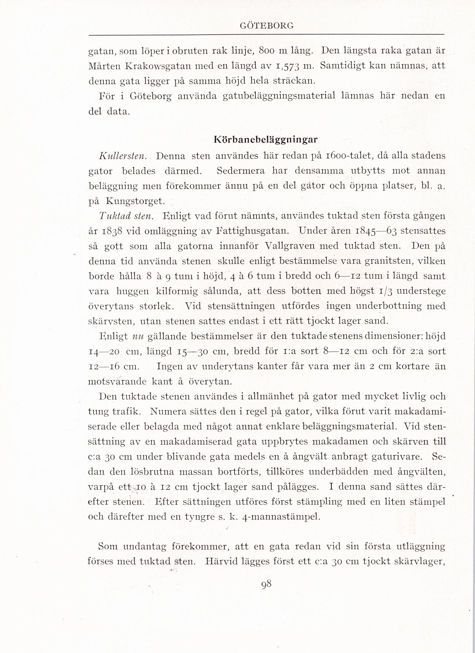 För i Göteborg använda gatubeläggningsmaterial lämnas här nedan en