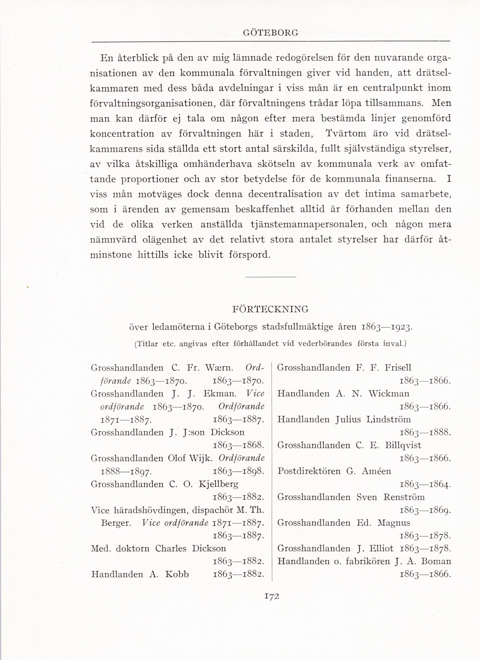 över ledamöterna i Göteborgs stadsfullmäktige åren 1863—1923.